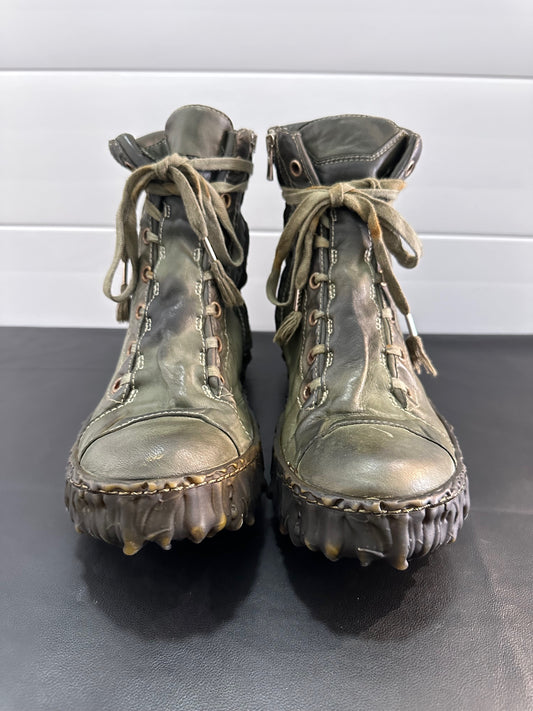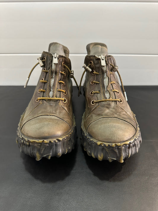 Olive Melt Clash Kangaroo Leather Mid Top Sneakers
