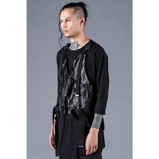 Black Soft Culatta Horse Leather Apron Vest By Deepti Barth
