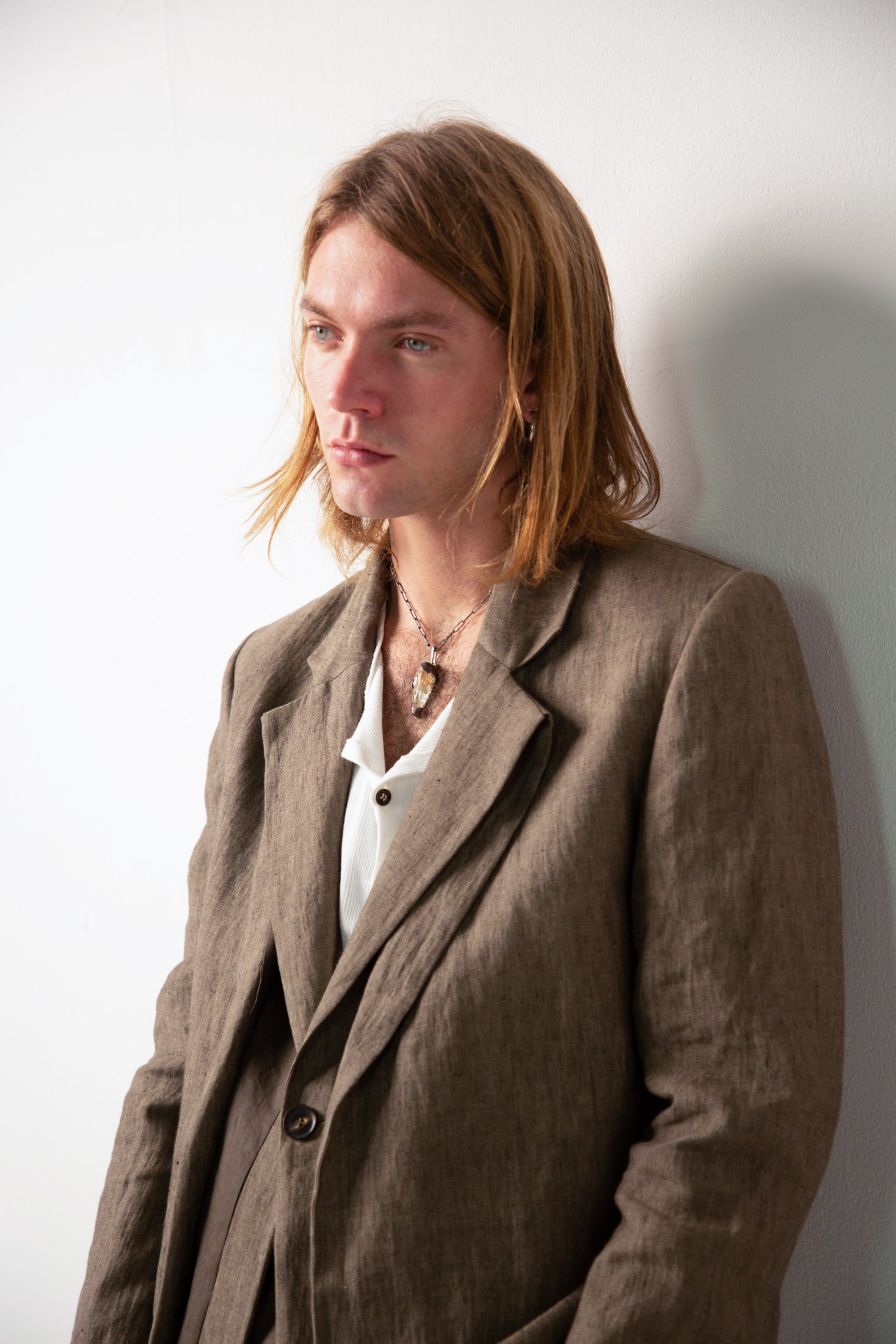 Mad Khaki Cotton Five Button Oversize Collared Jacket