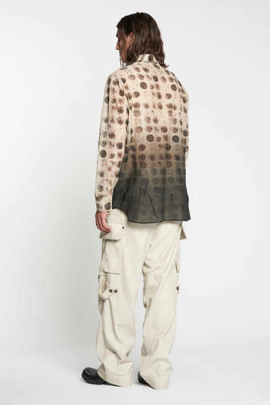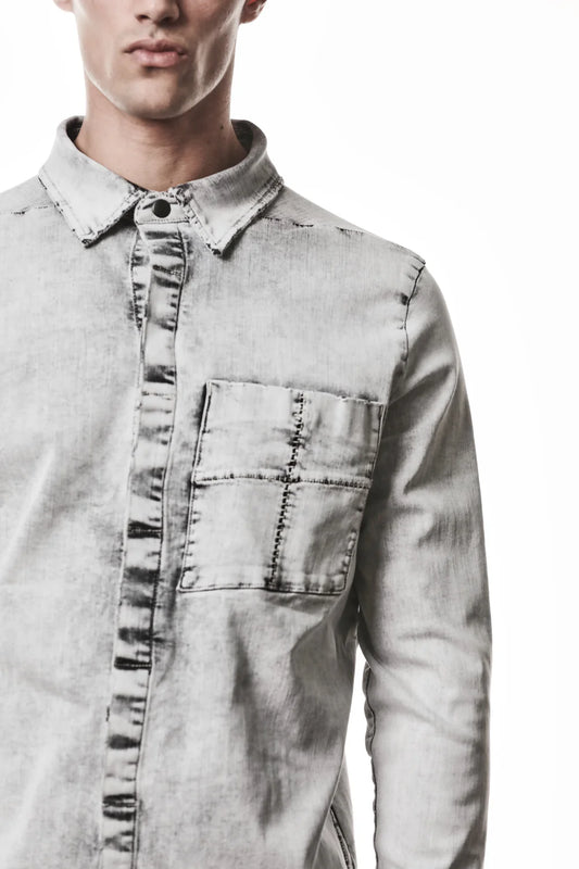 Black Crust Patchwork Jacquard Shawl Collar Shirt