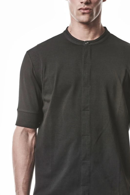 Black Soft Cotton Jersey Front Zipper Layered T-shirt