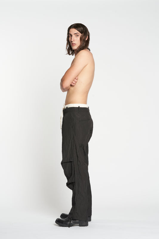 Black Cropped Drop Crotch Trousers Mst 429