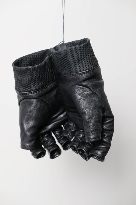 Black Kangaroo Leather Fingerless Gloves