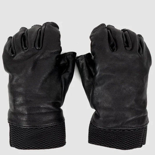 Black Kangaroo Leather Spiral Zipper Fingerless Gloves