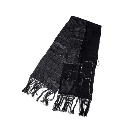 Charcoal X Black Cotton Cashmere Crust Patch Knit Long Stole