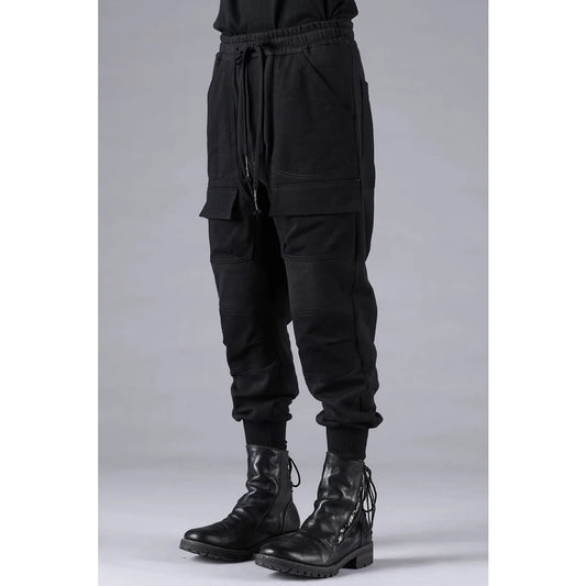 Black Untwisted Yarn Fleece Combination Wide Jogger Pants