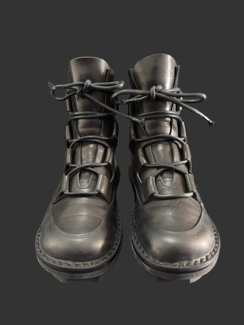 Black Calf Leather Beatle Ballast Boots By Rick Owens