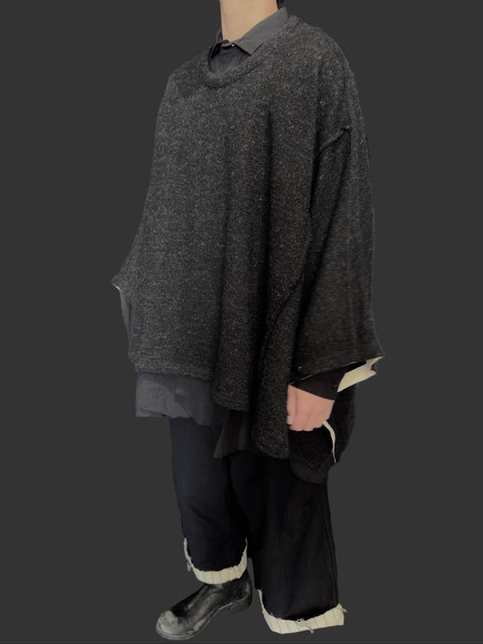 Carbon Grey Big Stole Shetland Wool Knit Poncho