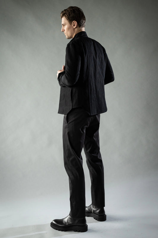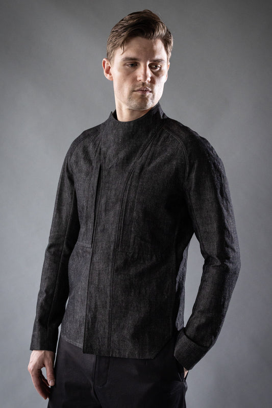 Vendor:RORKE BADERStatic Black Japanese Linen Cotton Chambray Aera OvershirtRegular price $1,100.00Regular priceUnit price per-