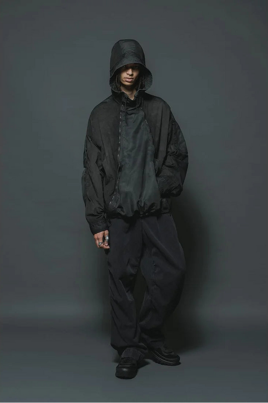 Shaded Black Object Dyed Nylon Hooded Parka