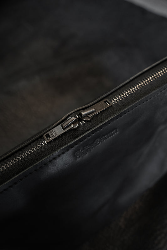 Black Italian Horsehide Zipper Clutch Travel Bag