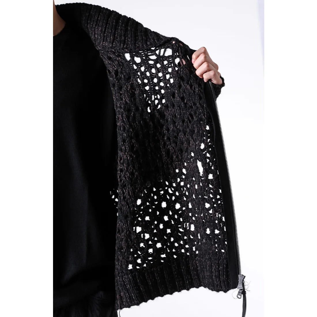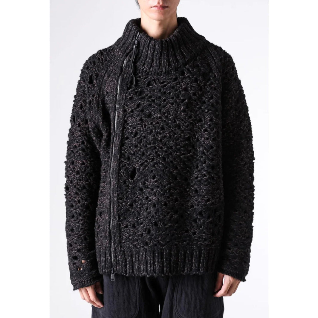 Black Brown Mix Mesh Cotton Wool Zip-Up Sweater