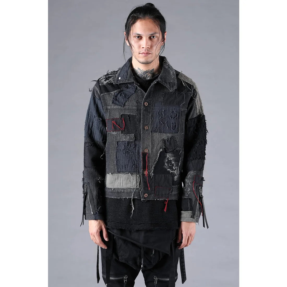 Black Crust Damage Repair Sashiko Jacquard Jacket