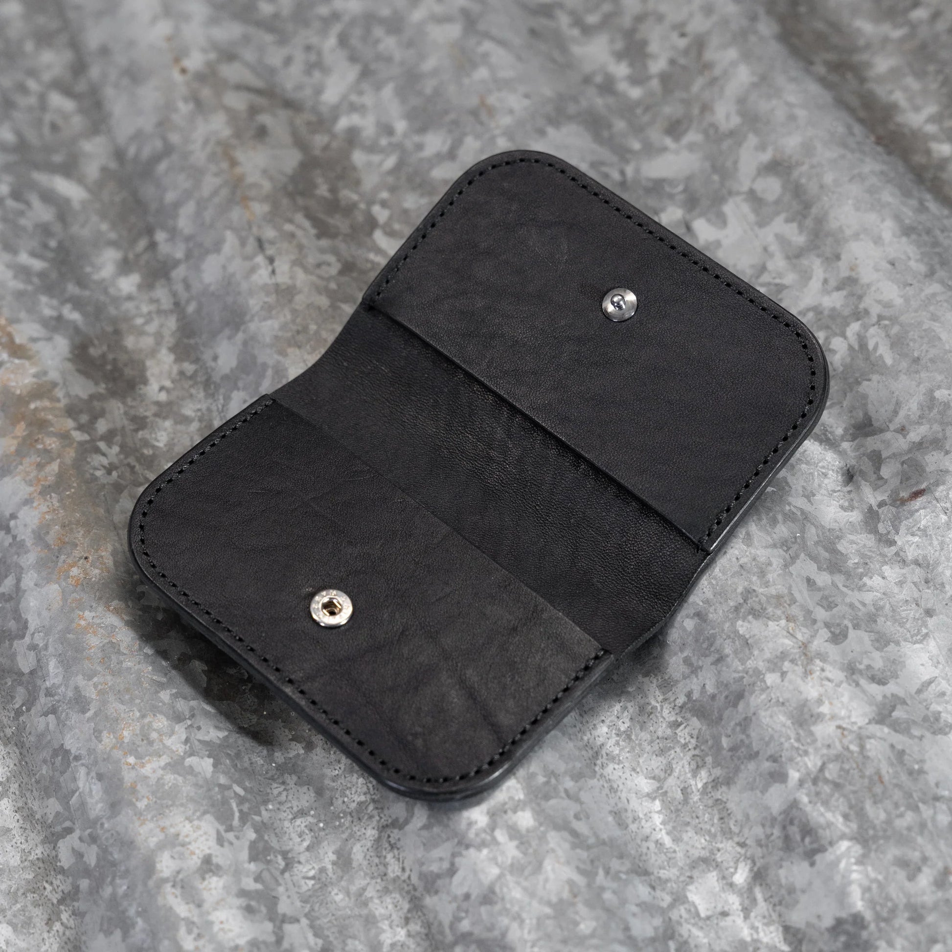 Featuring a sleek snap closure and a compact bi-fold silhouette, the Snap Card Holder holds up to 6 cards within two thoughtfully designed slots. Each piece is meticulously saddle-stitched and finished with solid brass hardware, combining durability with elegant craftsmanship.