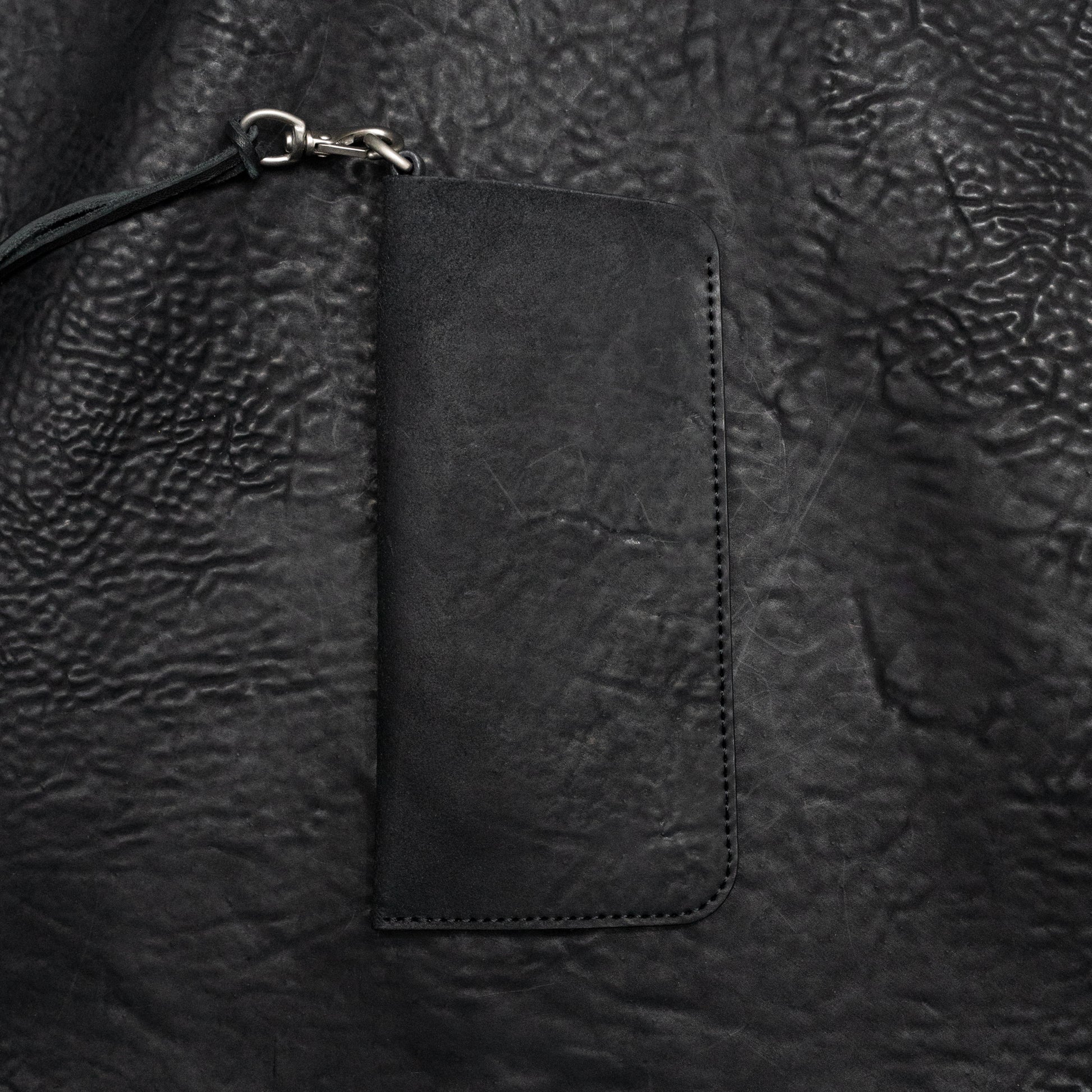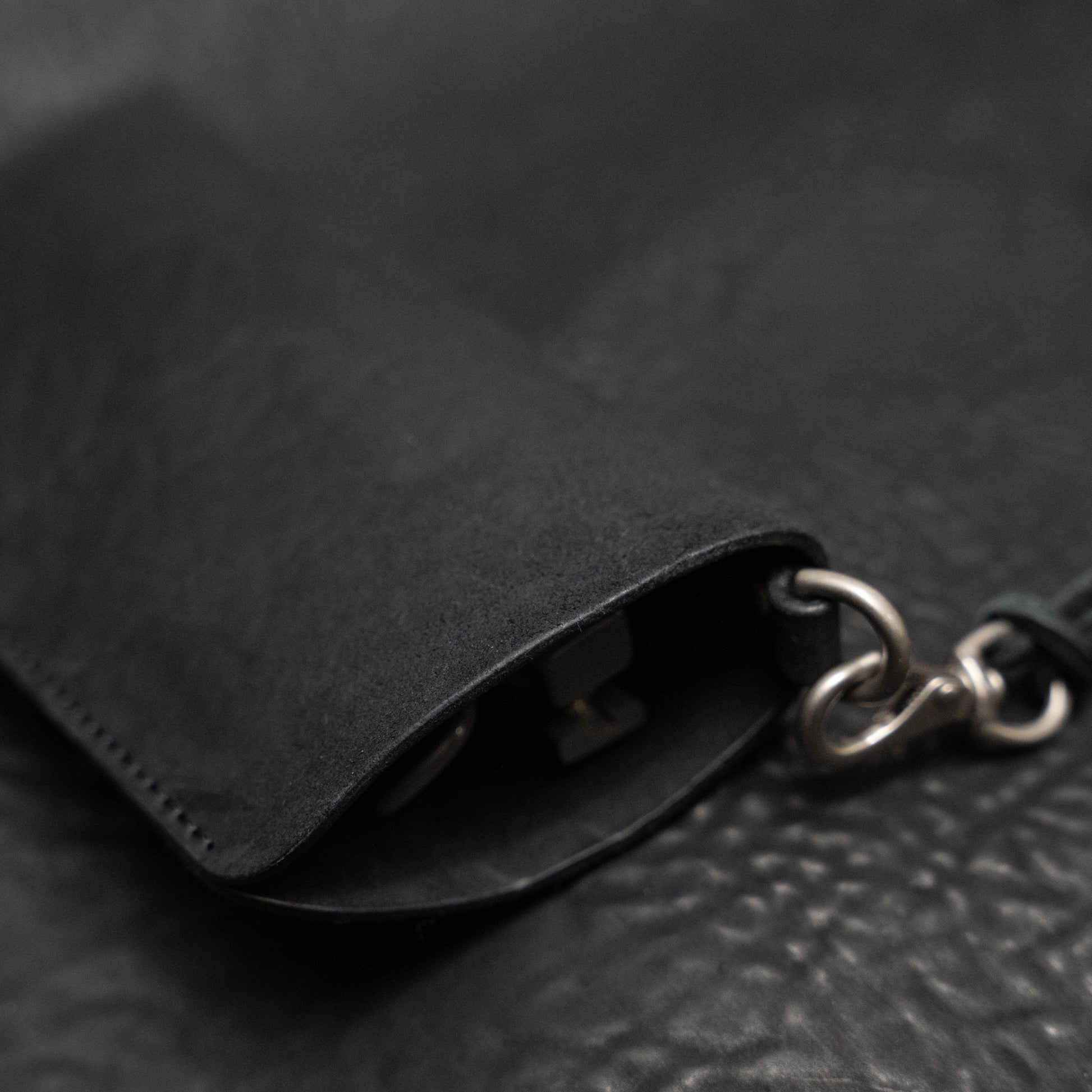 A quiet blend of utility and texture, the Kinich II Eyewear Pouch is designed to carry essentials with ease and intention. Cut from Italian reverse culatta horsehide in matte black, a material known for its fibrous grain, raw texture, and ability to age with character.