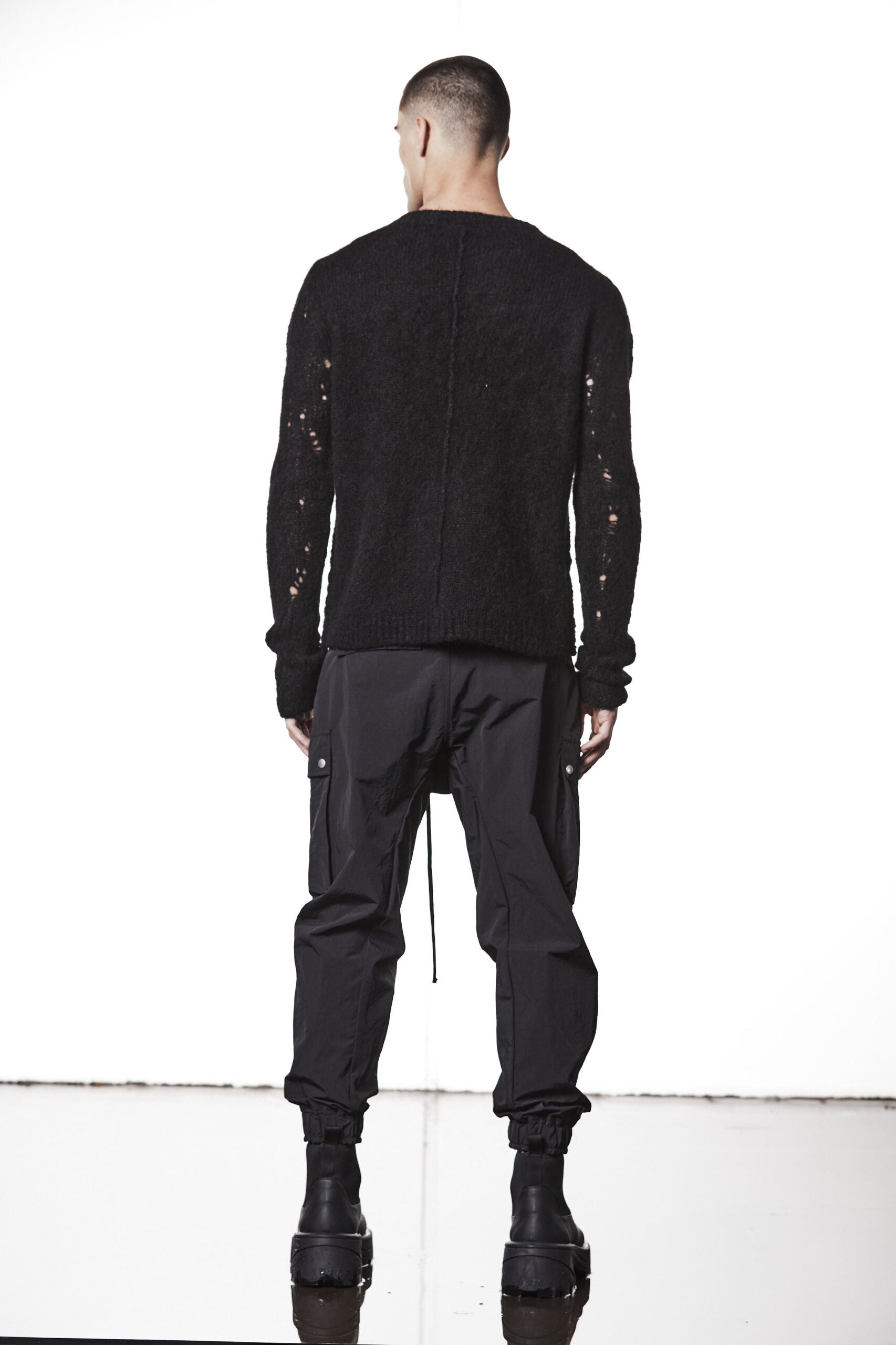 Black Destroyed Sleeves Crew Neck Sweater MK 122