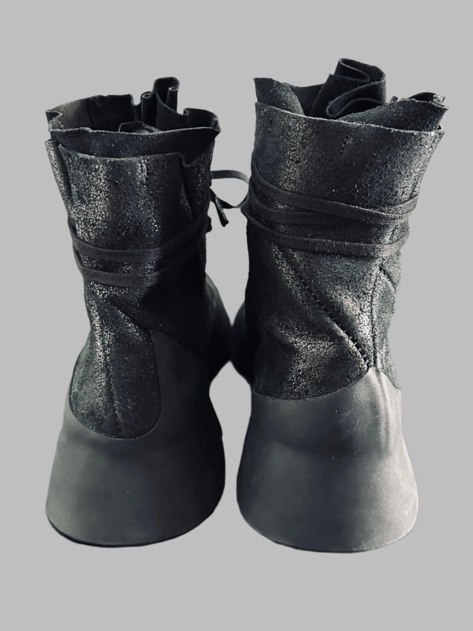 Black Distortion Featherweight Hi-Top Resin Reverse Horse Leather Sneakers