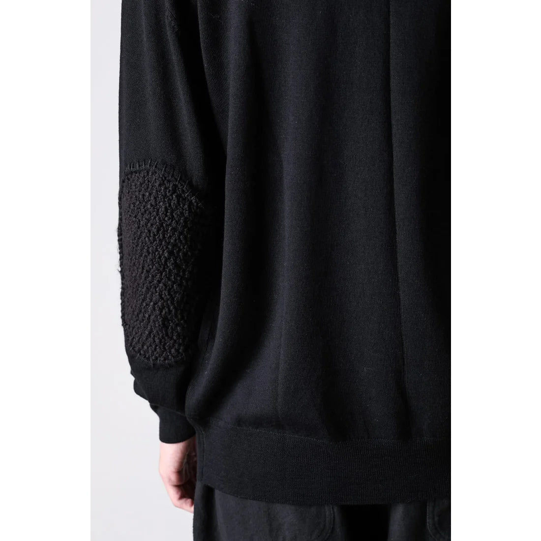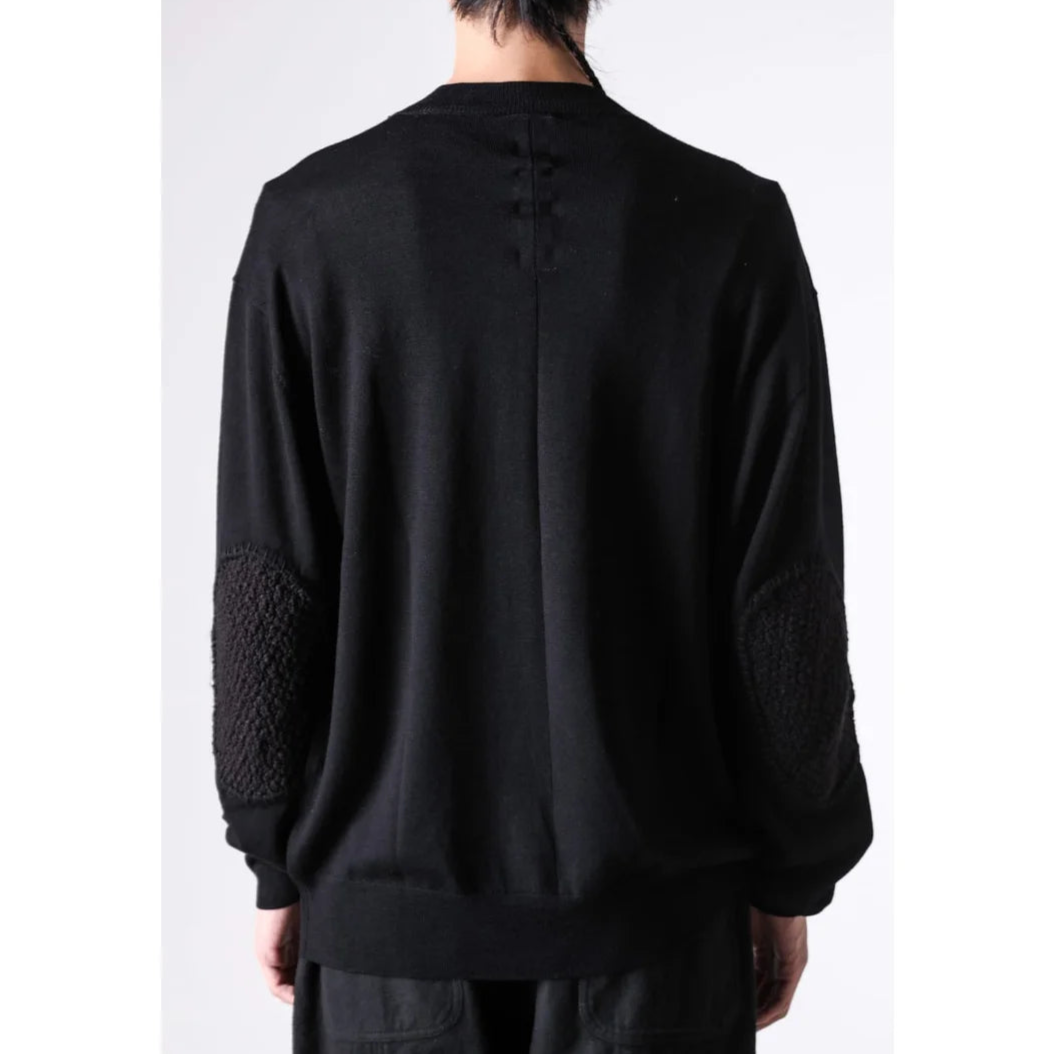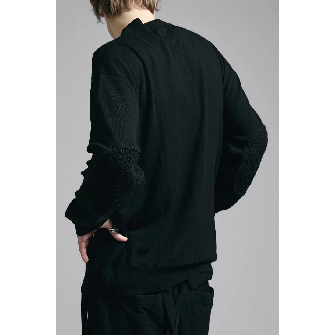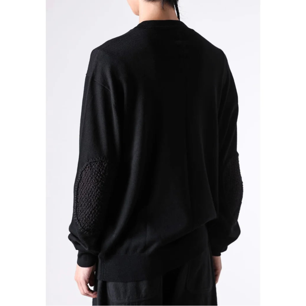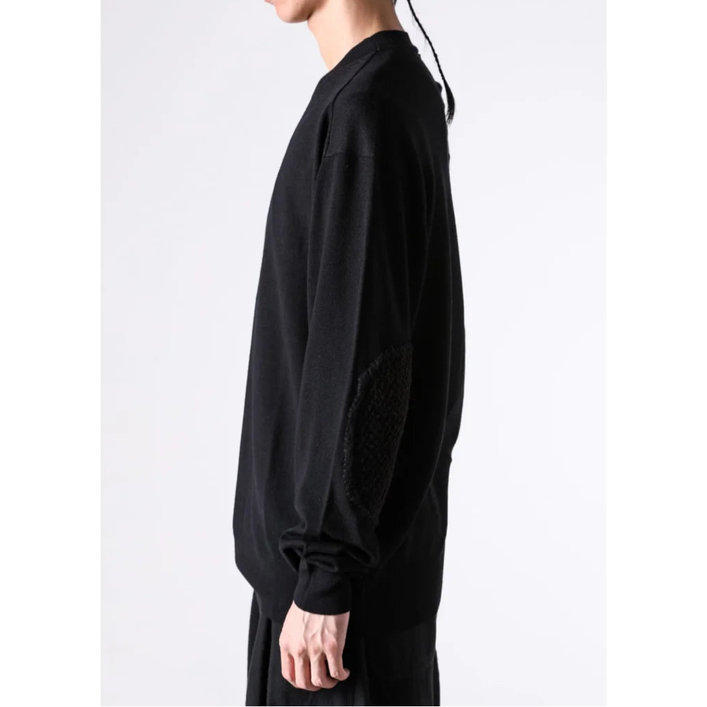 As a design accent, the elbow area features thick patches knit with cotton slub yarn.