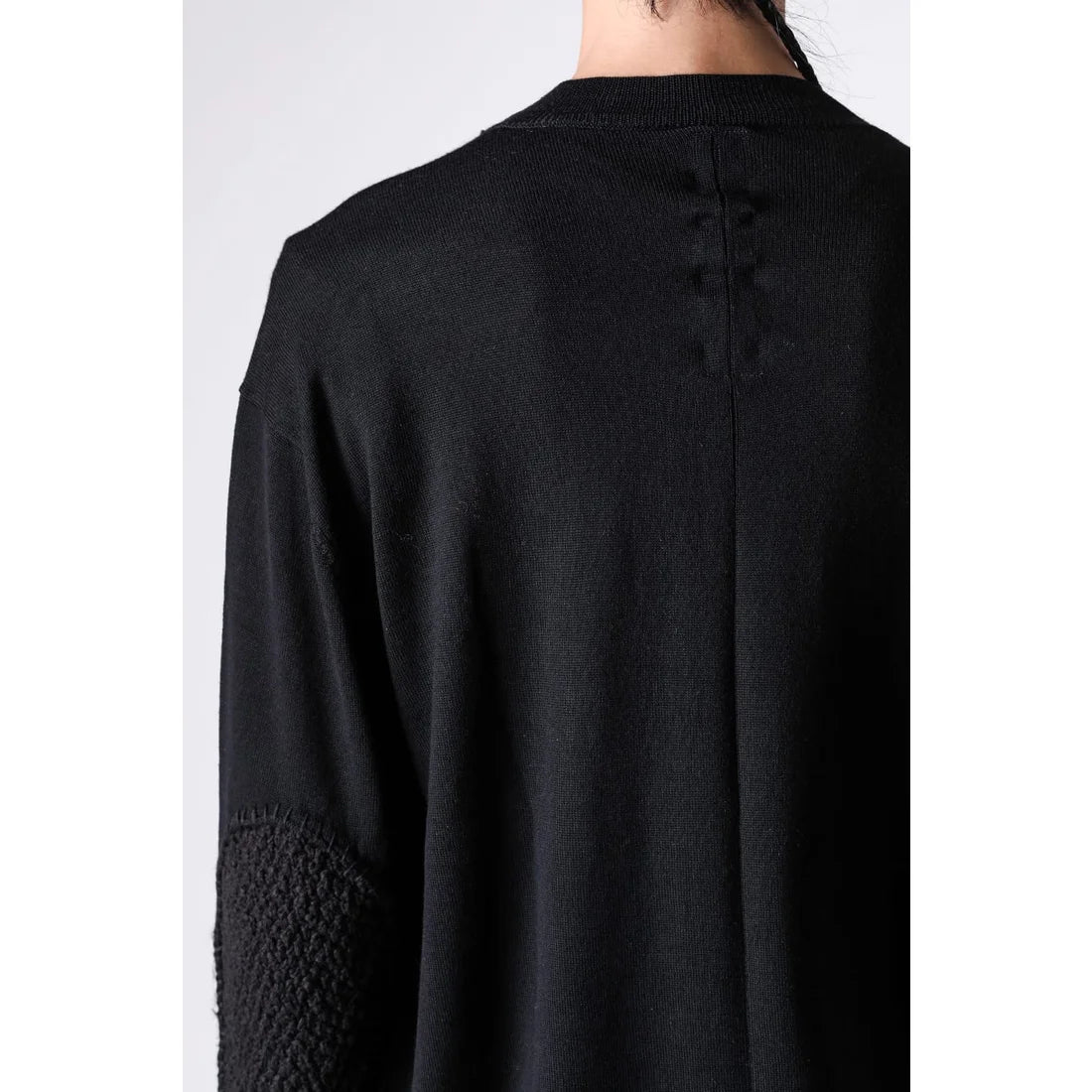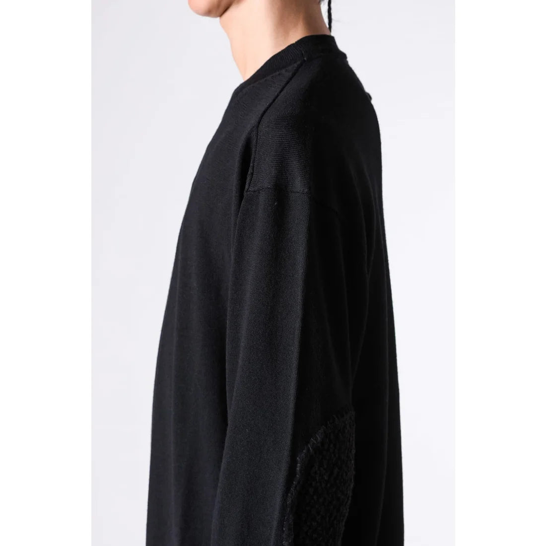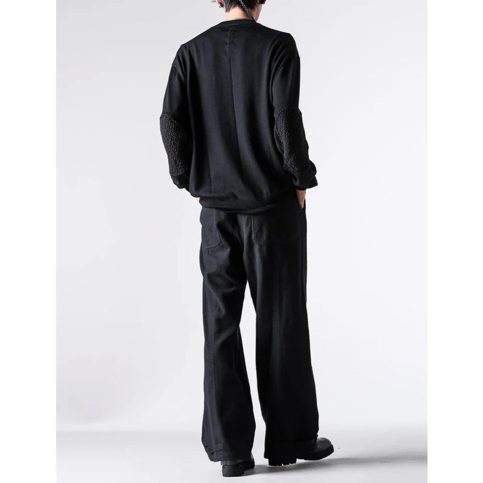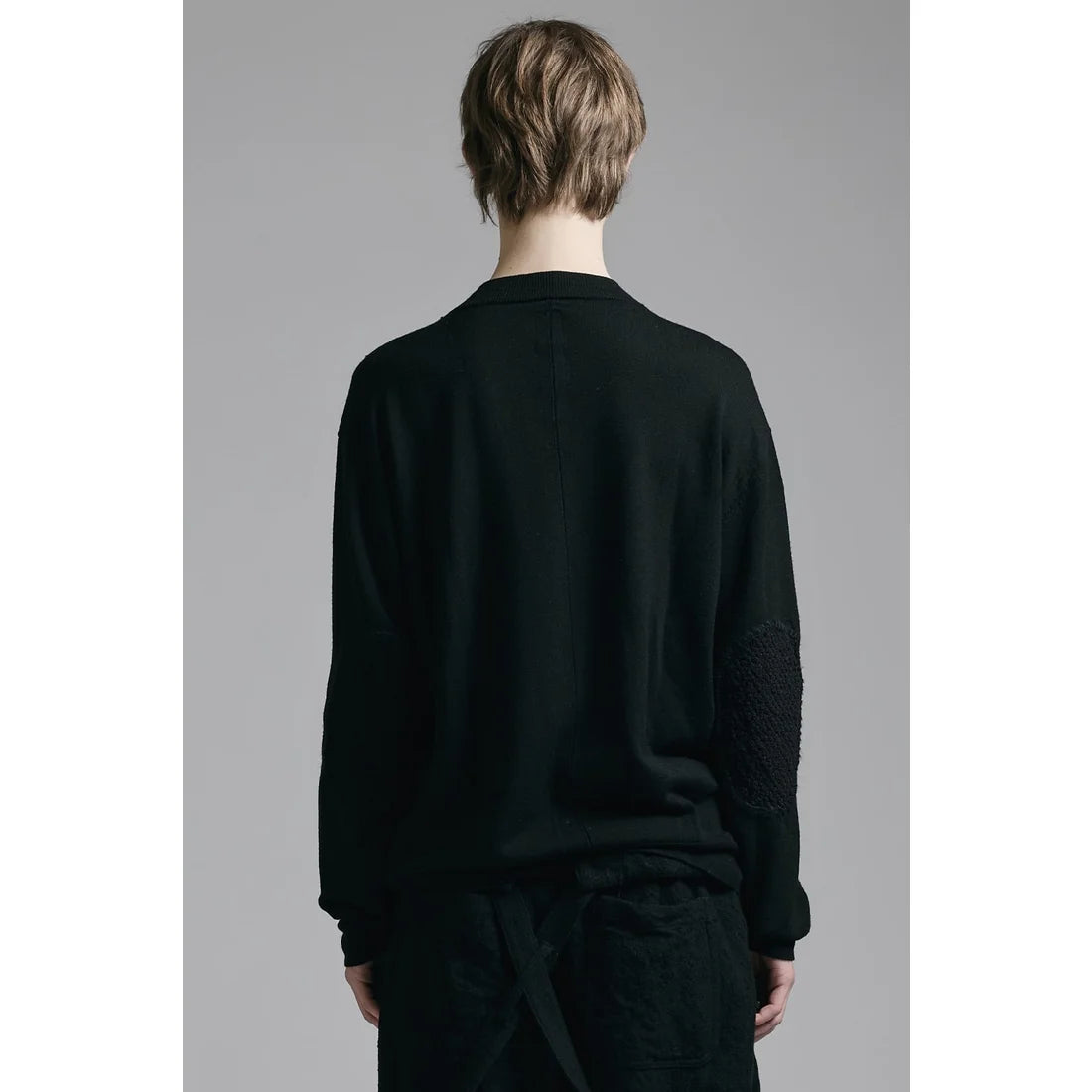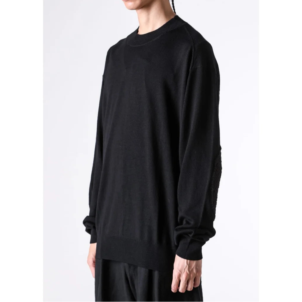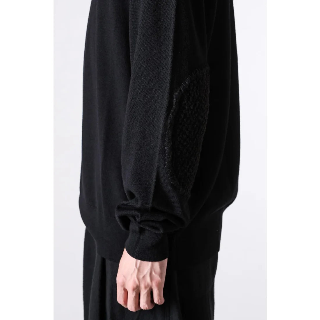 As a design accent, the elbow area features thick patches knit with cotton slub yarn.
