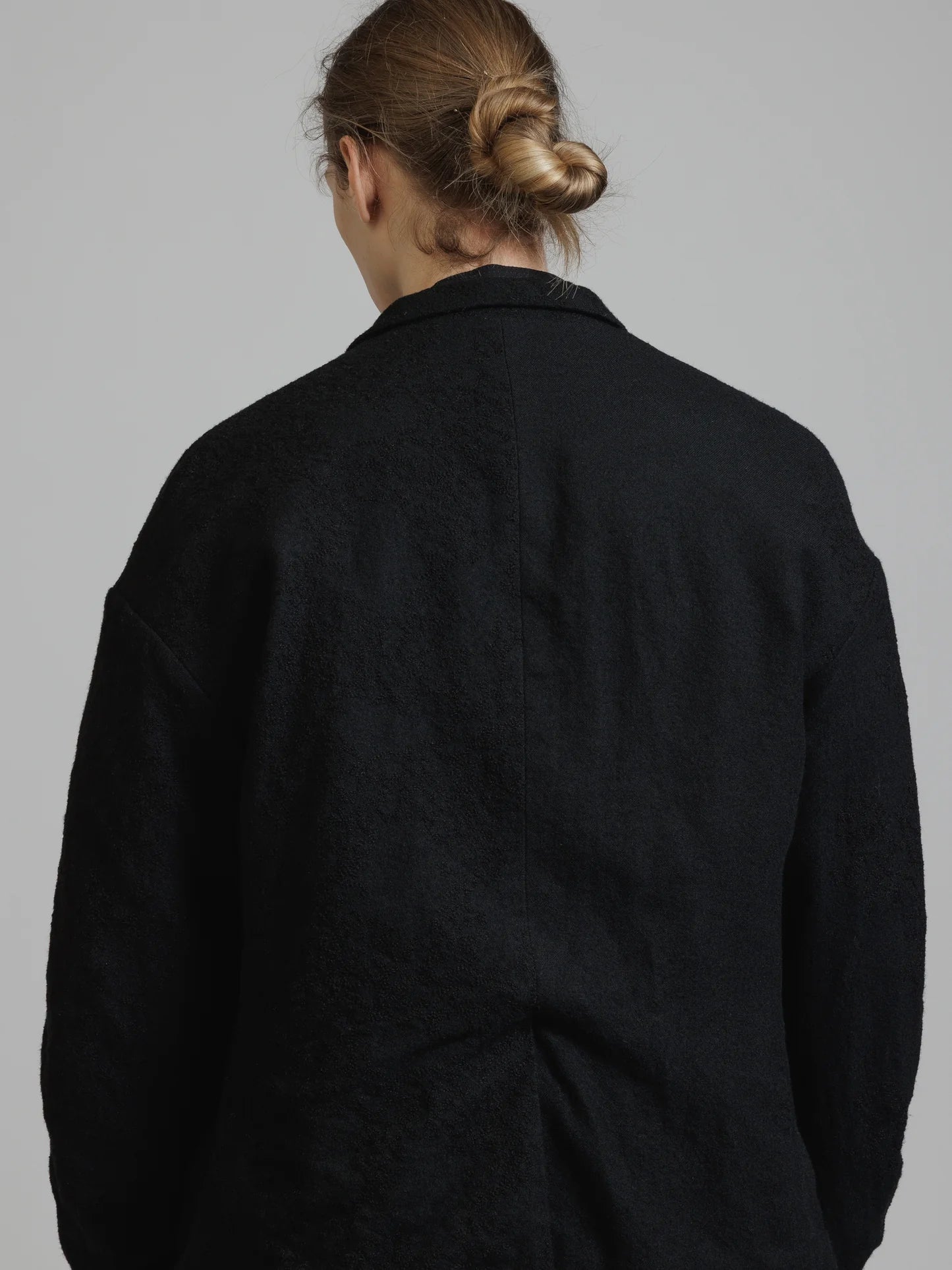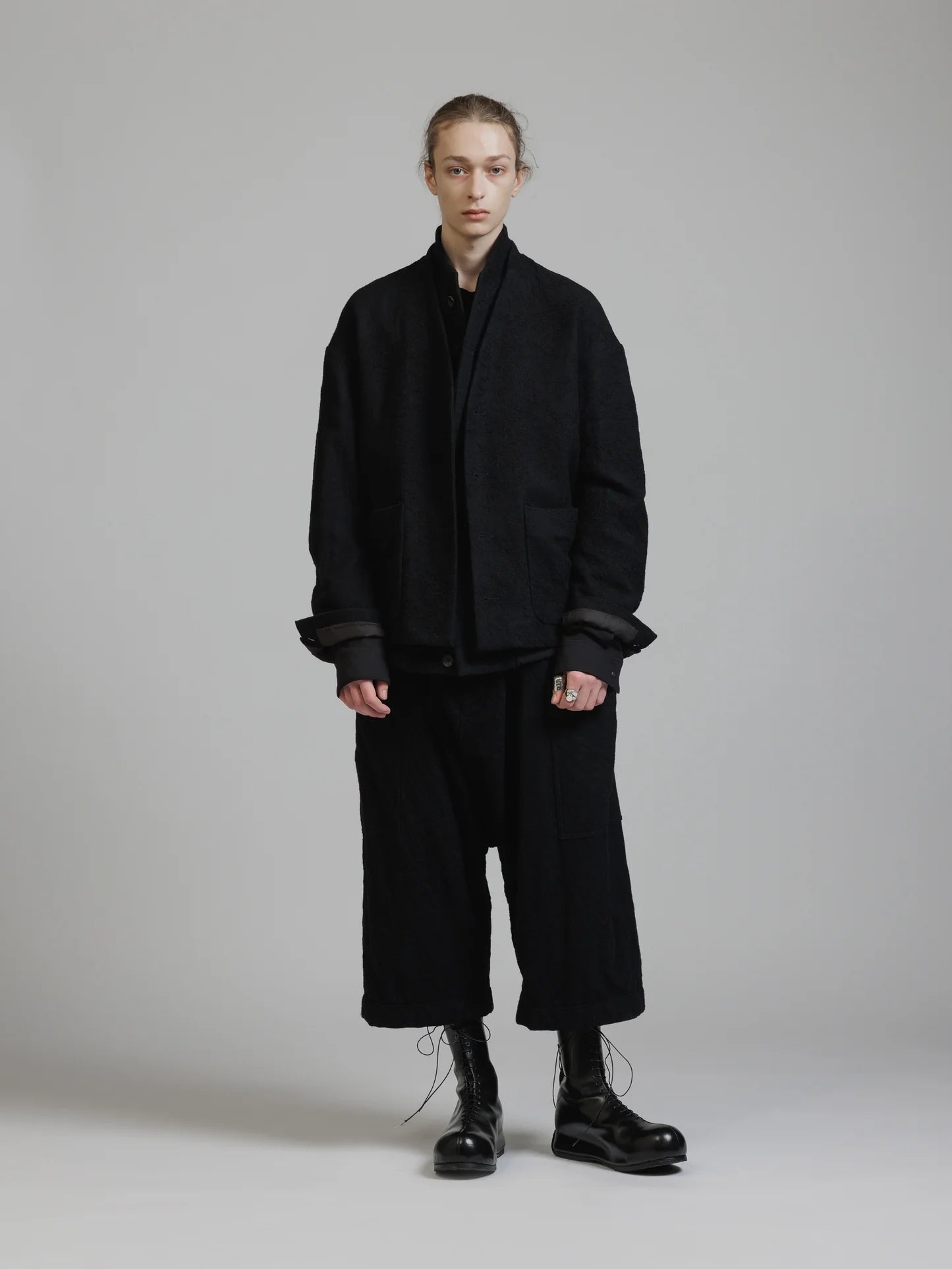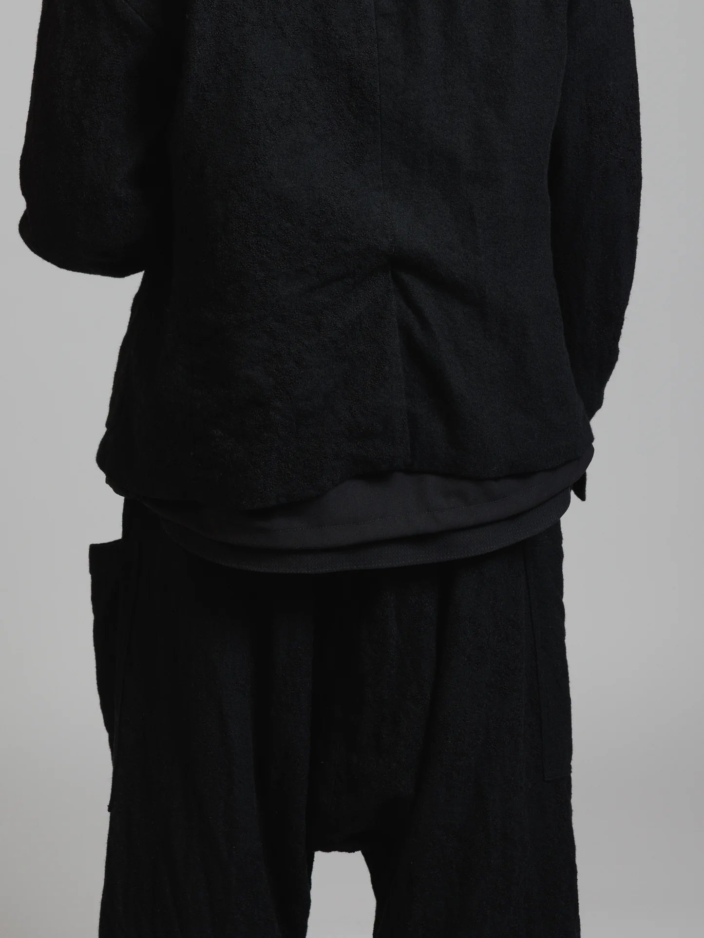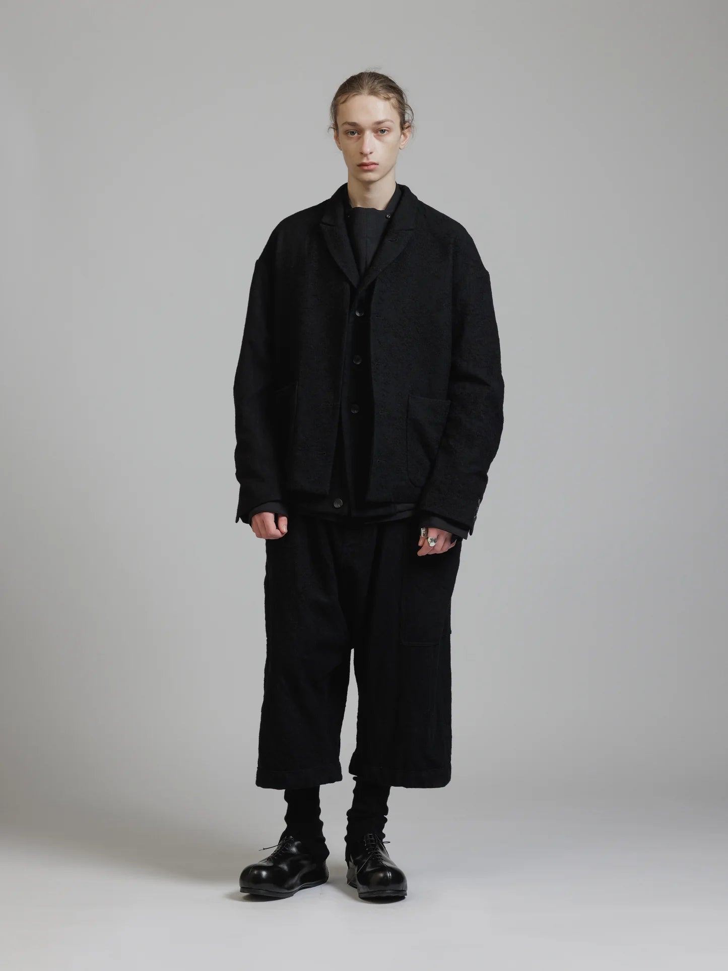 The fabric is a blend of linen and wool, providing warmth along with a soft thickness and elasticity, resulting in a cozy finish.