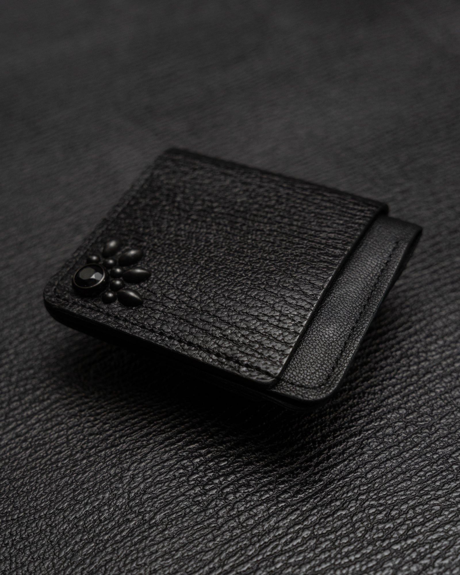 The Studded Double Bifold is built around restraint—designed to carry what you need without unnecessary weight or excess. Hand-stitched entirely in the studio, the silhouette balances a traditional wallet form with a slimmer, more deliberate profile.
