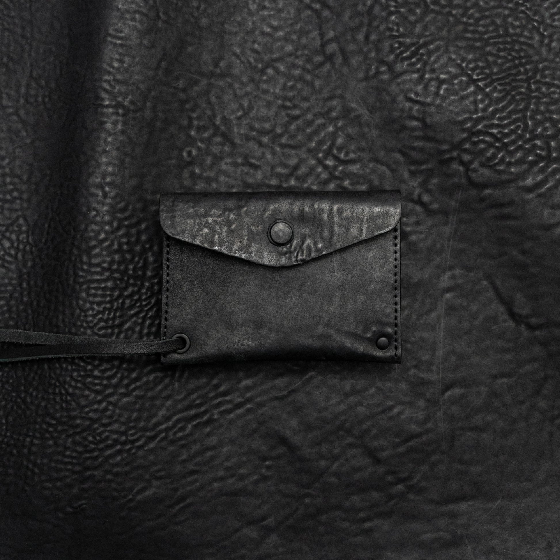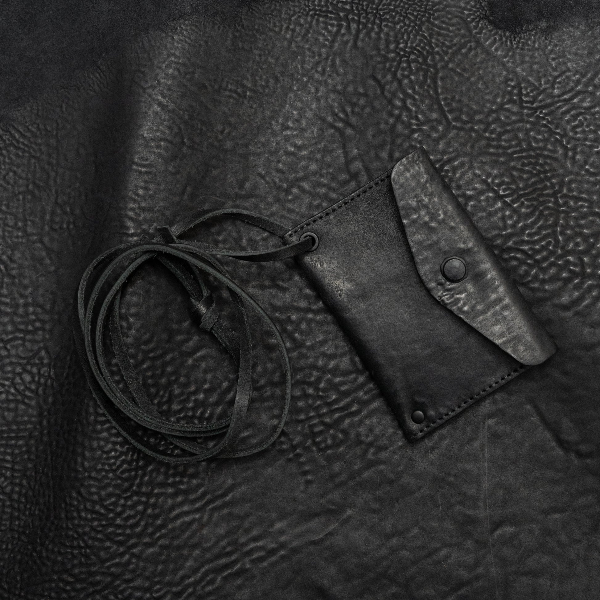 A compact card holder cut from Italian horse culatta. A single compartment holds 4–5 cards — the essentials, kept close. A slim leather neck strap allows the holder to be worn on the body and can be removed for pocket carry when needed. Quiet in silhouette, built on material character rather than hardware, Cadena Cuero is a small form made to age visibly and honestly.