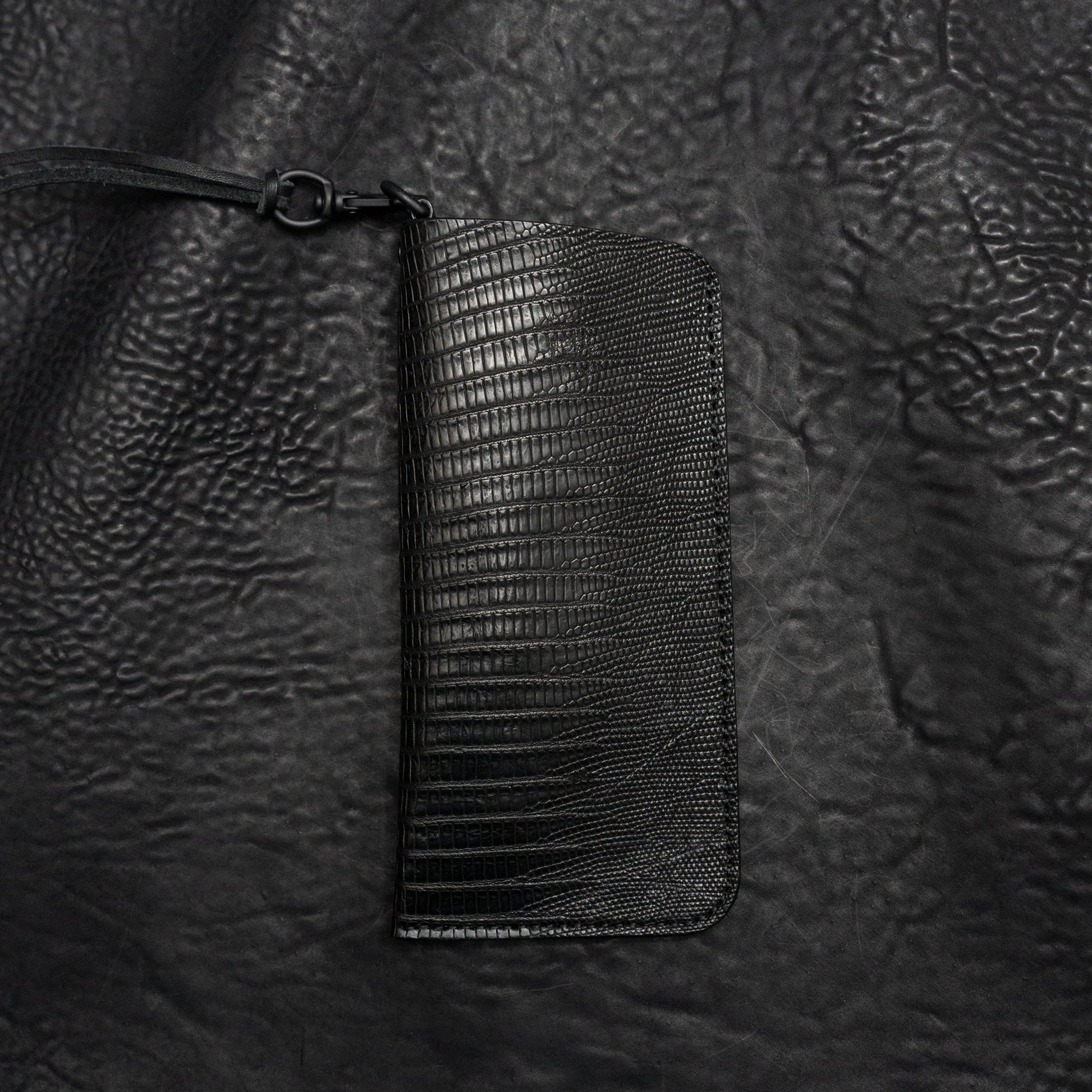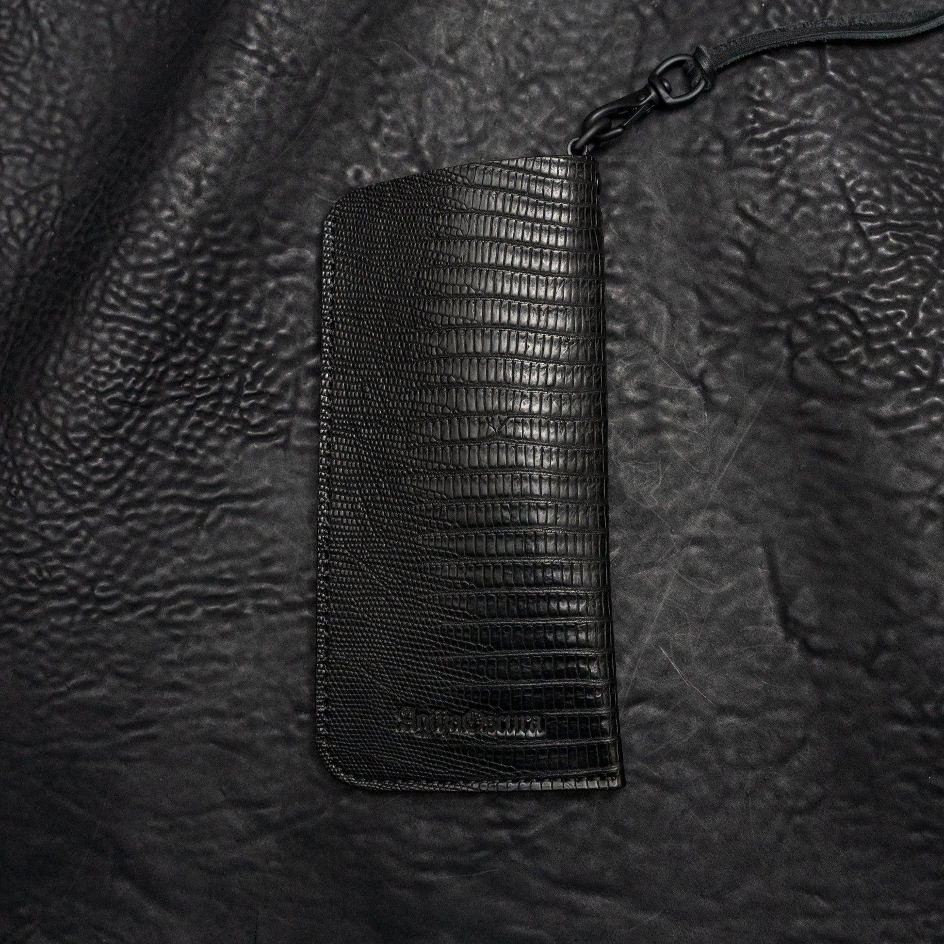A quiet blend of utility and texture, the Kinich II Eyewear Pouch is designed to carry essentials with ease and intention. Hand-cut from South American Teju lizard and lined with Italian horsehide, its natural rosette pattern introduces a refined grain that reads subtle from a distance and intricate up close — a surface that will soften and deepen in tone with handling over time.
