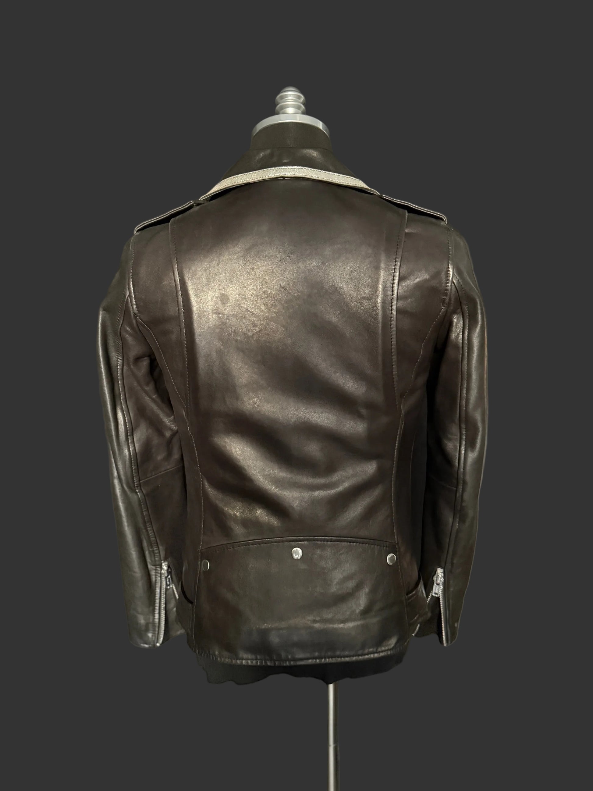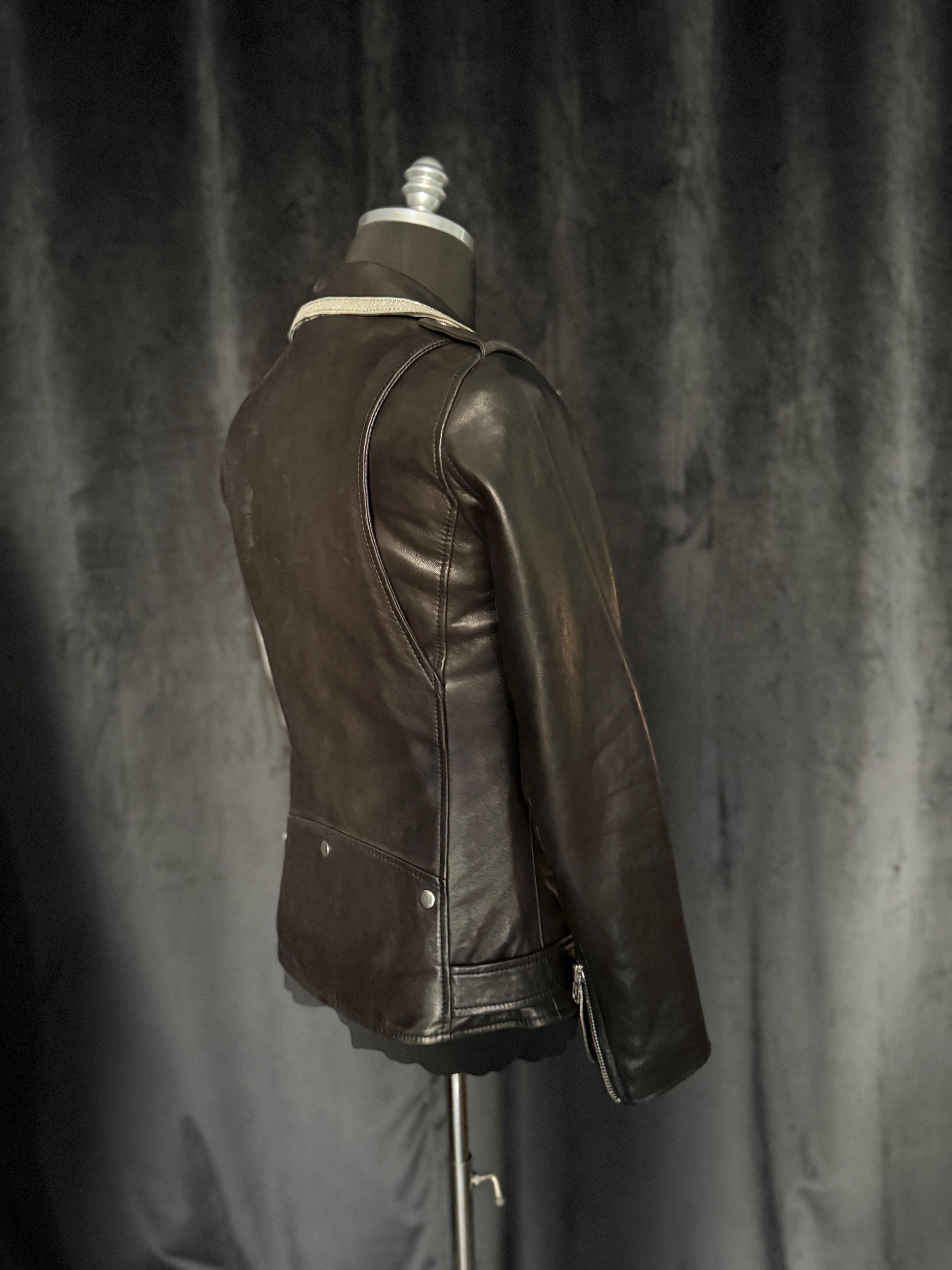 MC style classic leather jacket with silver leather trim collar