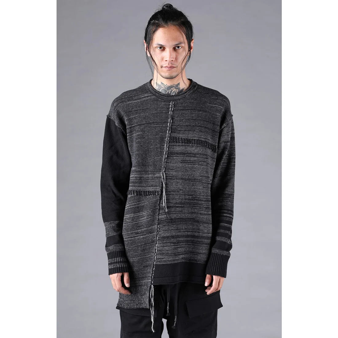 Charcoal Cotton Cashmere Unbalanced Border Knit Pullover