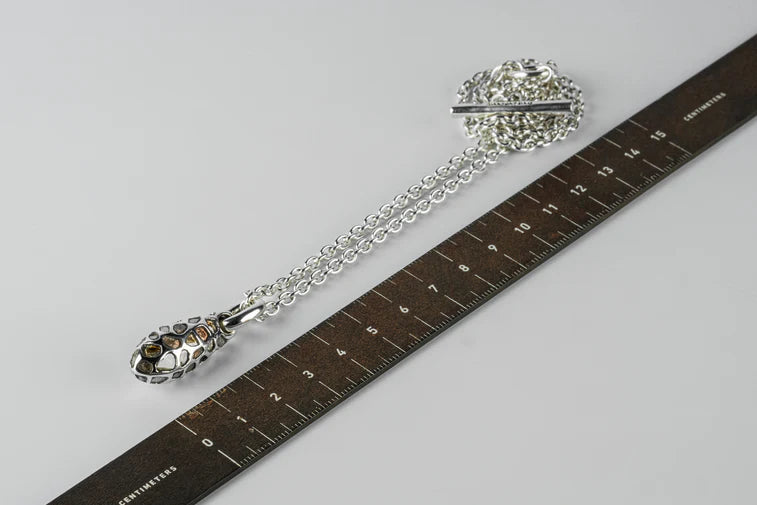 | Dimensions: | Pendant (WxH): 10 × 30 mm Link size (WxH): 11 × 14 mm Chain length: 740 mm |