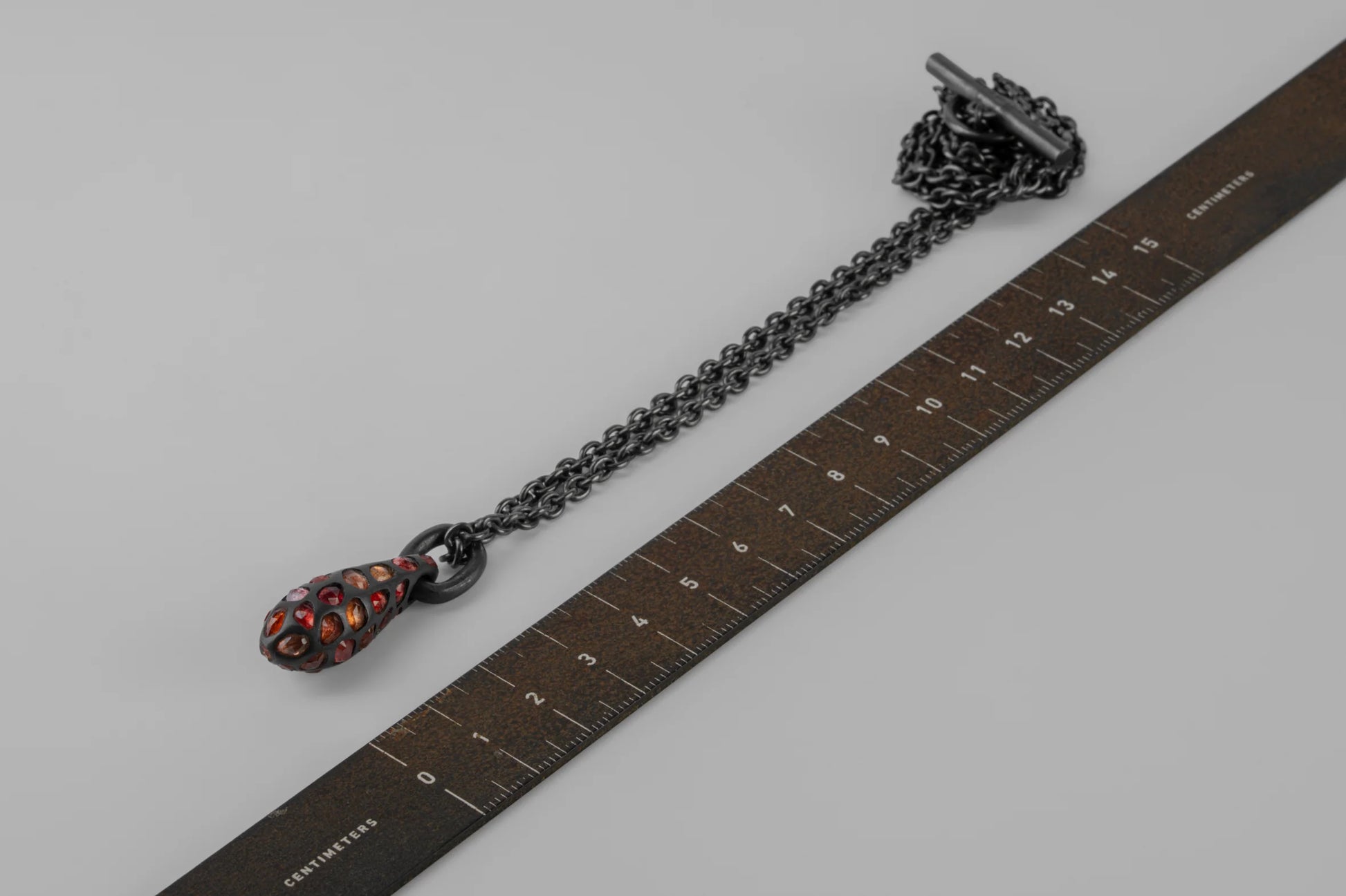 | Dimensions: | Pendant (WxH): 10 × 30 mm Link size (WxH): 11 × 14 mm Chain length: 740 mm |