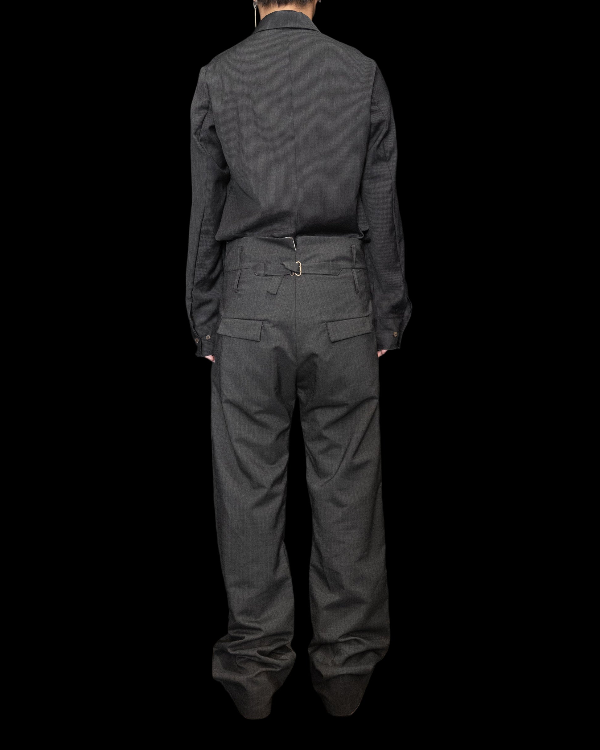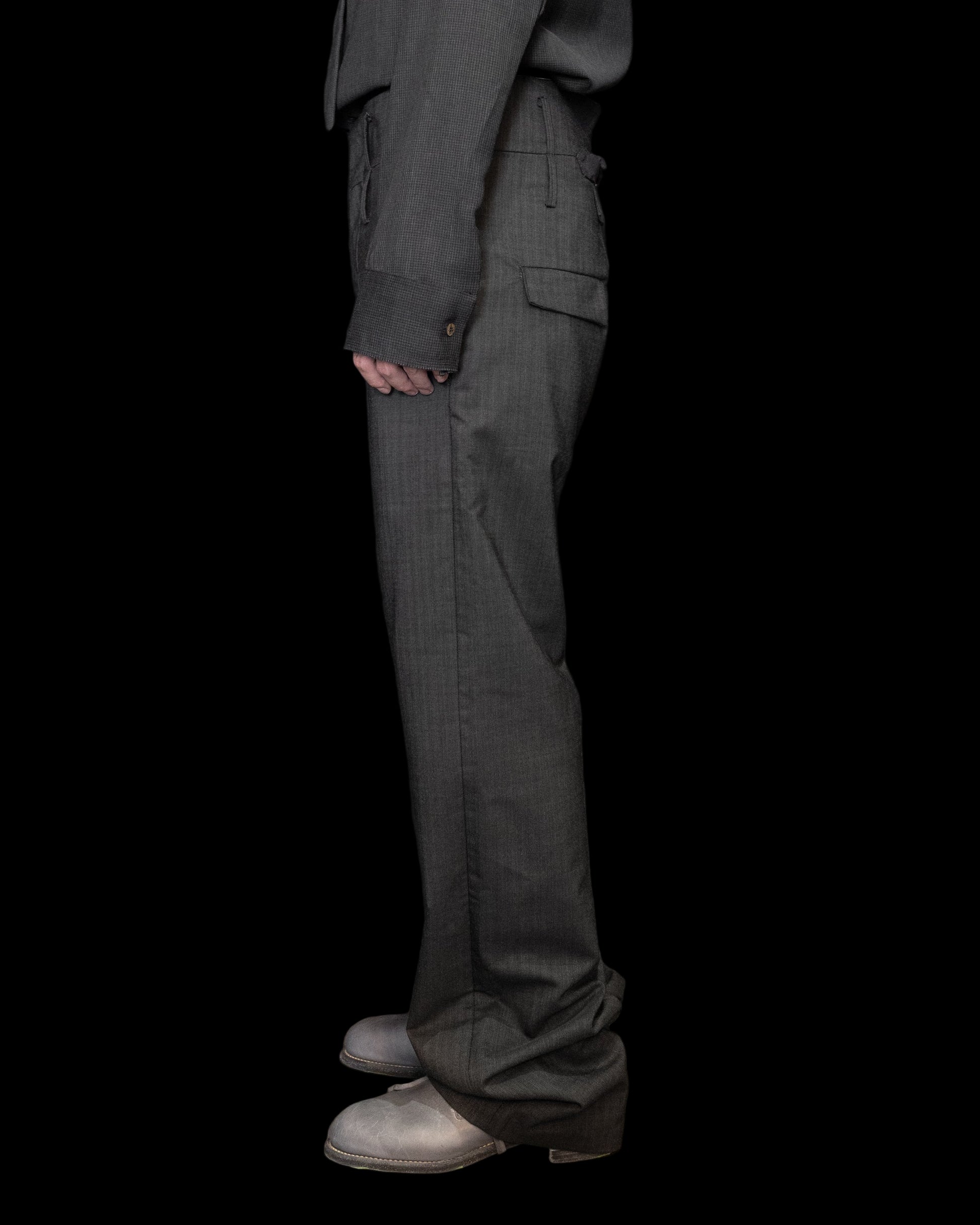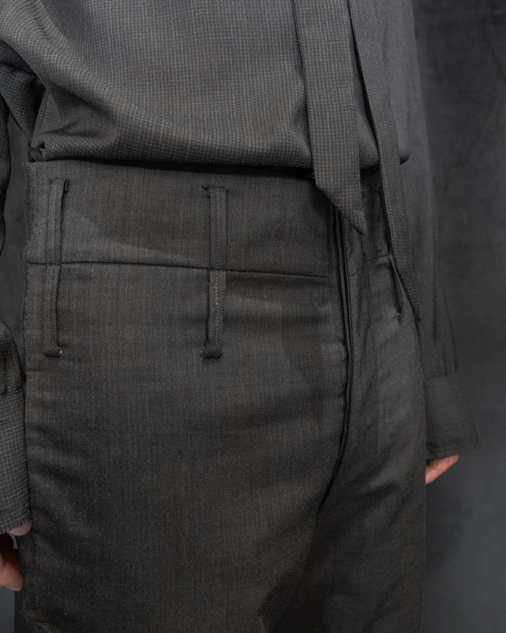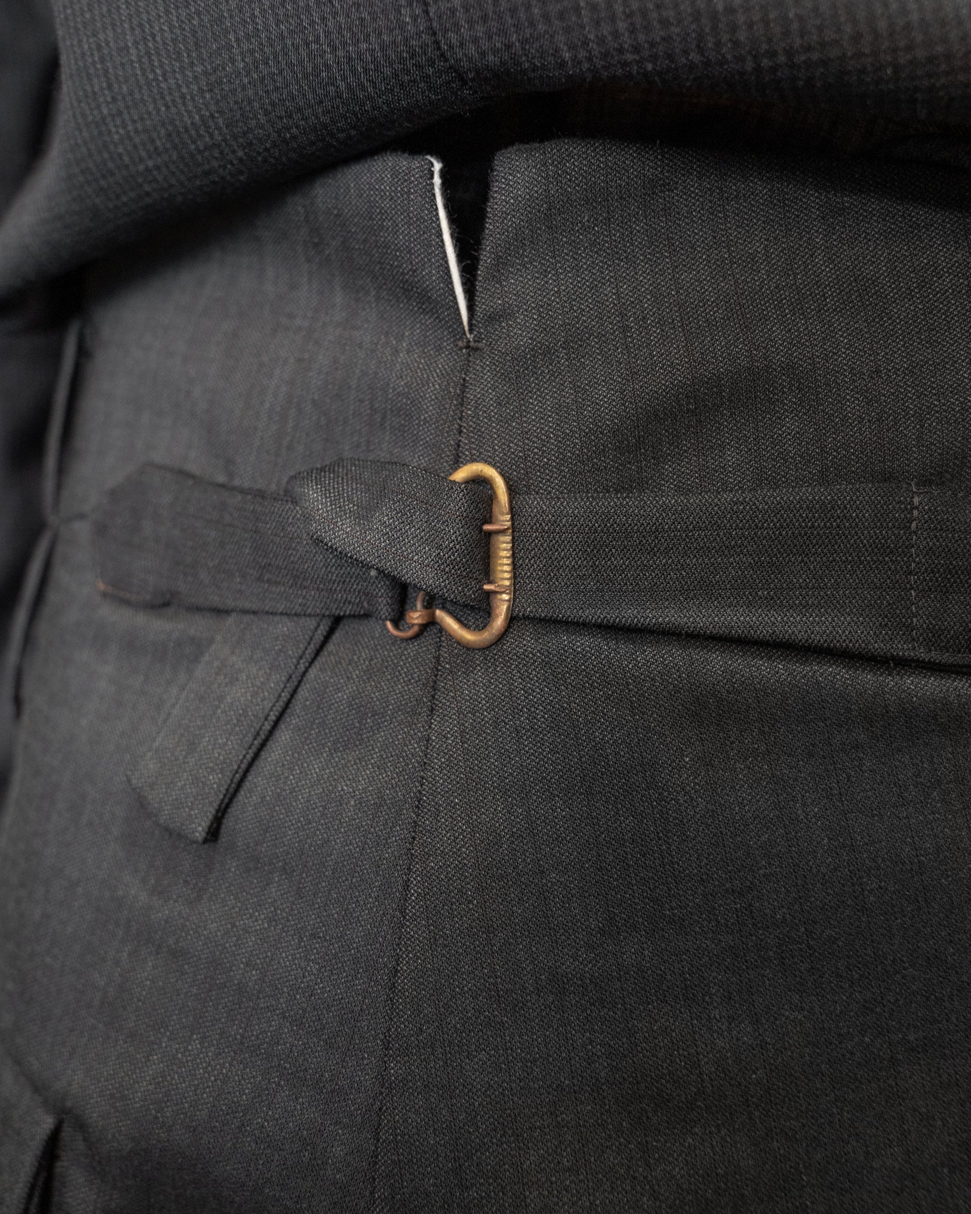 Virgin Wool 48% + Linen 38% + PA 14% Dark grey with subtle burgundy stripe, 100% cotton lining