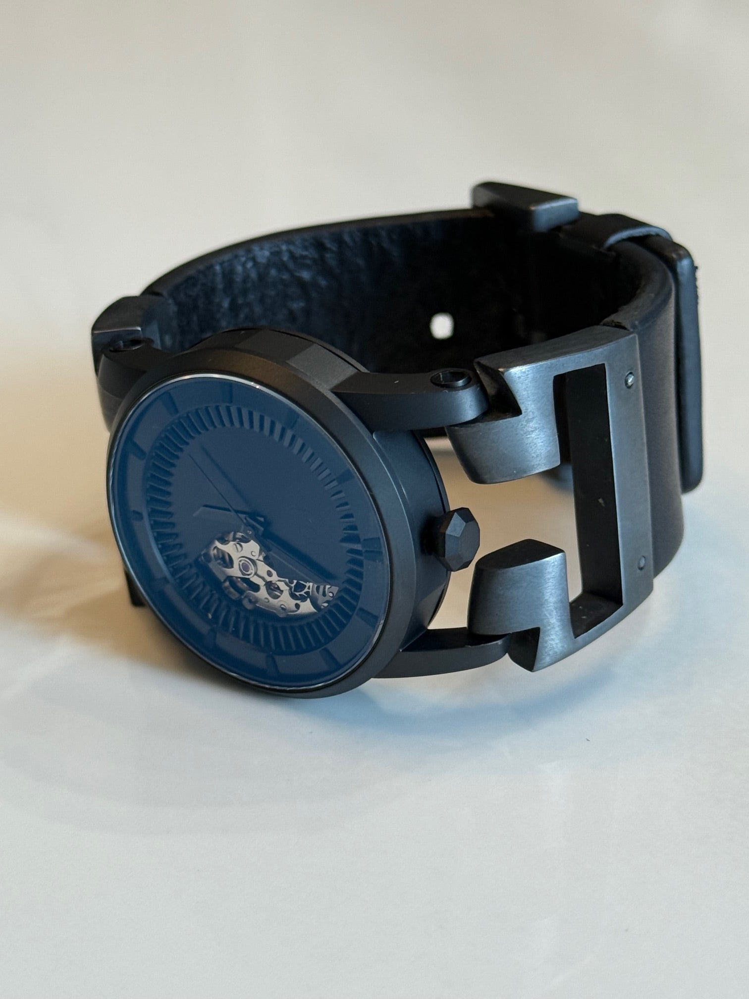 An exclusive designed strap, that combines genuine leather, oxidized silver and steel finish, is a reflection of PARTS OF FOUR’S DNA.