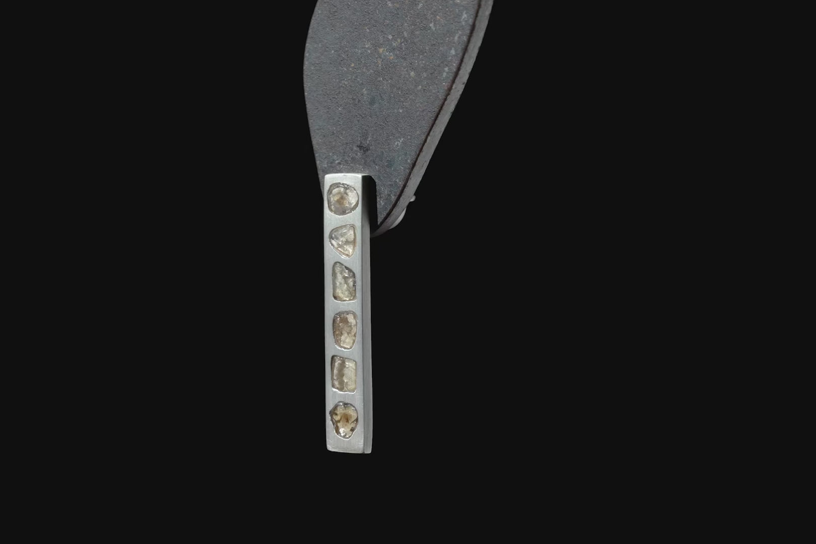 | Colors: | MA:MATTE STERLING SILVER. Sanded at 320 gritDIA:ROUGH DIAMOND. The stones used in this item are cuts of diamond material that are removed from a larger chunk of diamond as they are attempting to get to the perfect diamond in the center. Each stone fragment and shape are absolutely unique. |