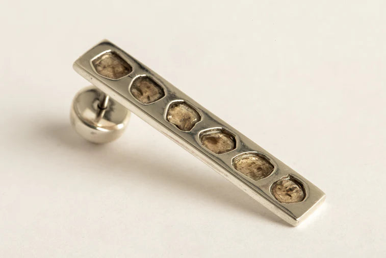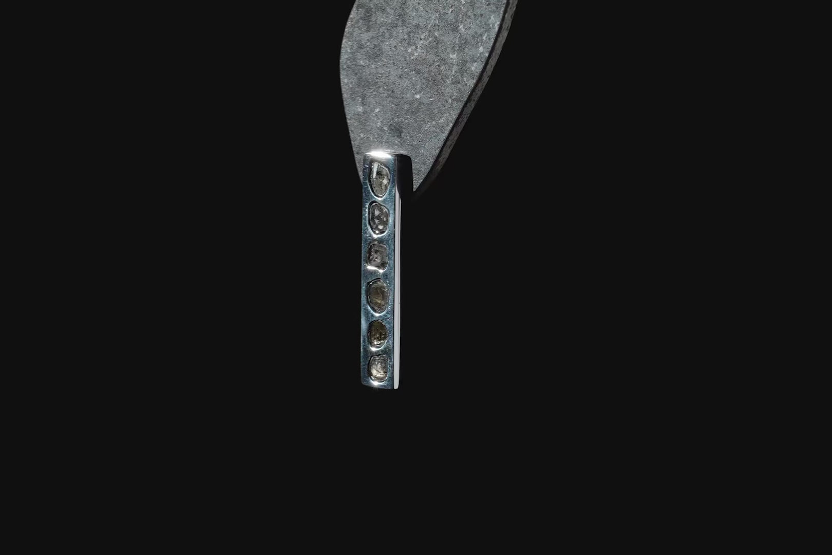 | Colors: | PA:POLISHED STERLING SILVER.DIA:ROUGH DIAMOND. The stones used in this item are cuts of diamond material that are removed from a larger chunk of diamond as they are attempting to get to the perfect diamond in the center. Each stone fragment and shape are absolutely unique. |