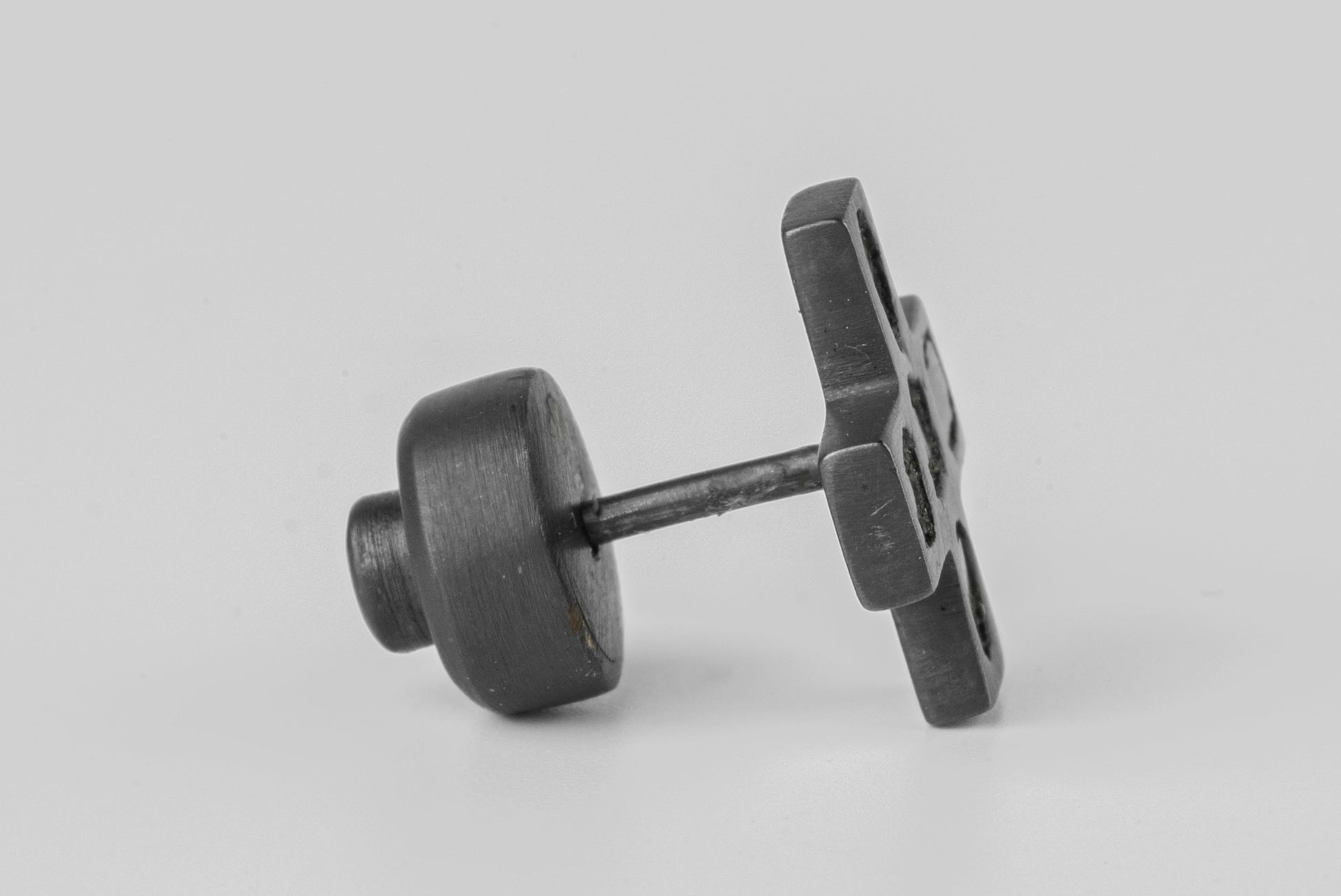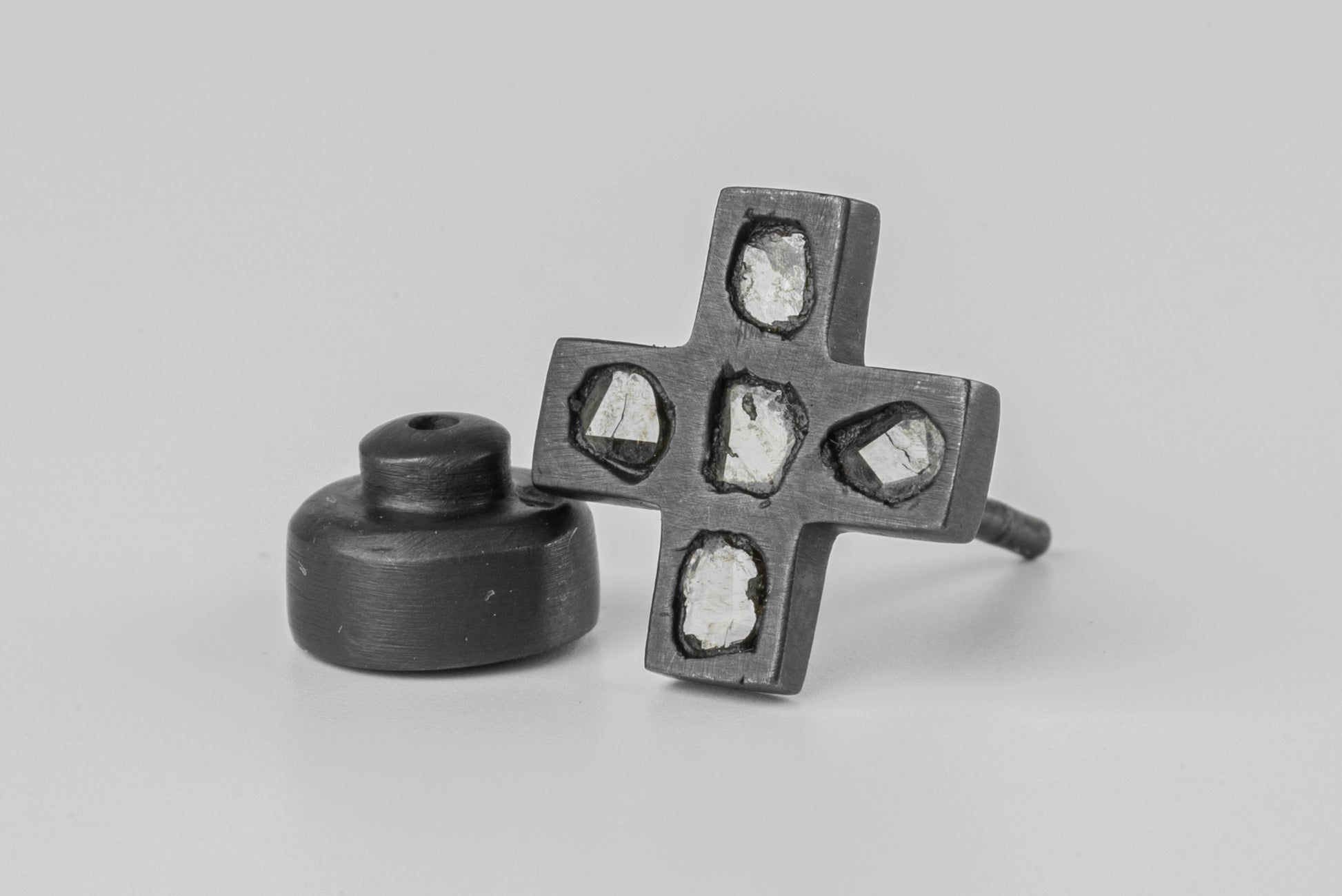 KA:BLACK STERLING. Black Sterling is a surface oxidation of sterling silver. This finish may fade over time, which can be considered an enhancement. Please note that Black Sterling tends to appear darker in photograph than in person.The finish can be re-blackened easily with Liver of Sulfur, available at most jewelry suppliers.DIA:ROUGH DIAMOND. The stones used in this item are cuts of diamond material that are removed from a larger chunk of diamond as they are attempting to get to the perfect diamond in the center. Each stone fragment and shape are absolutely unique. |