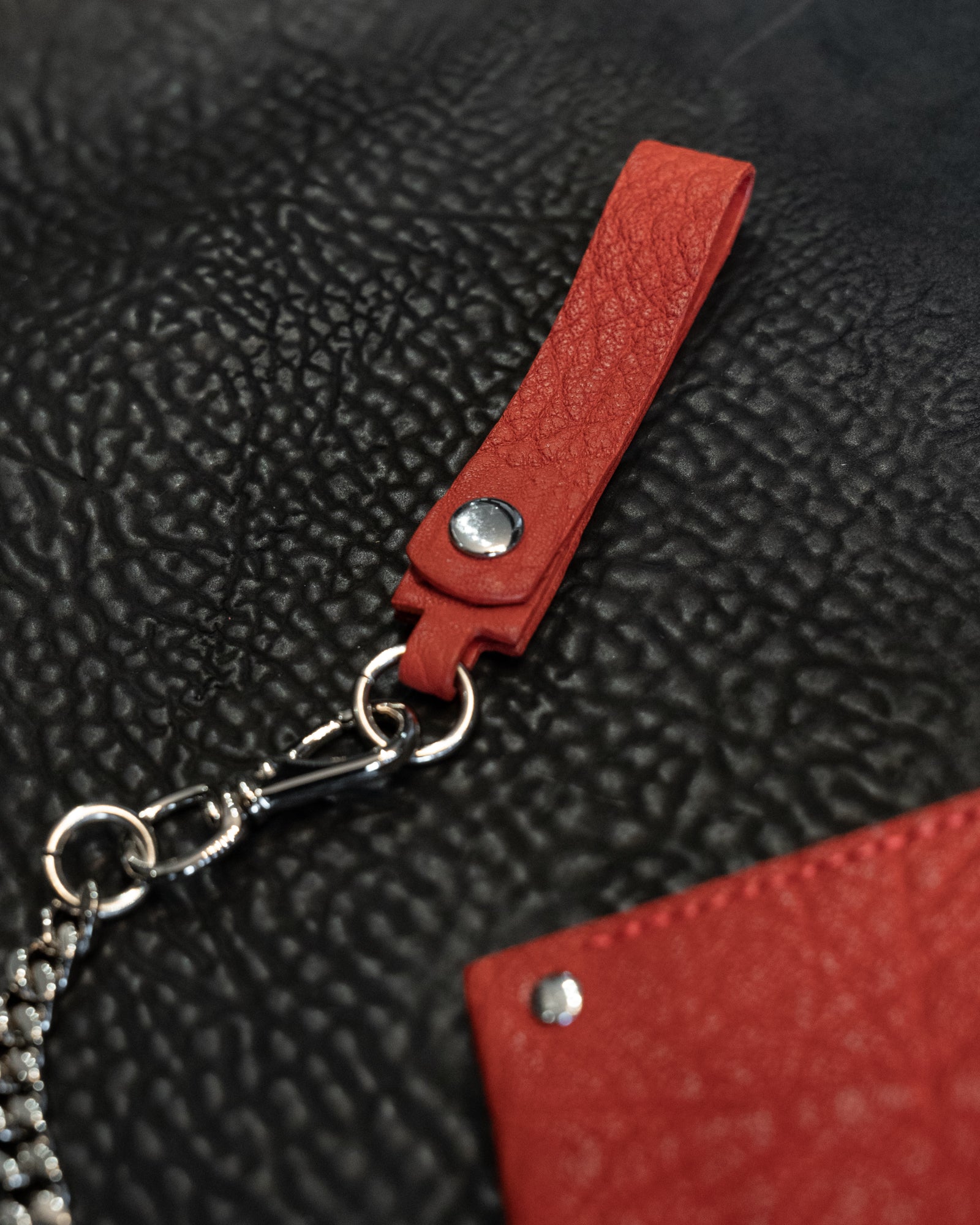 Red Horse Leather Cadena Card Case with Curb Chain