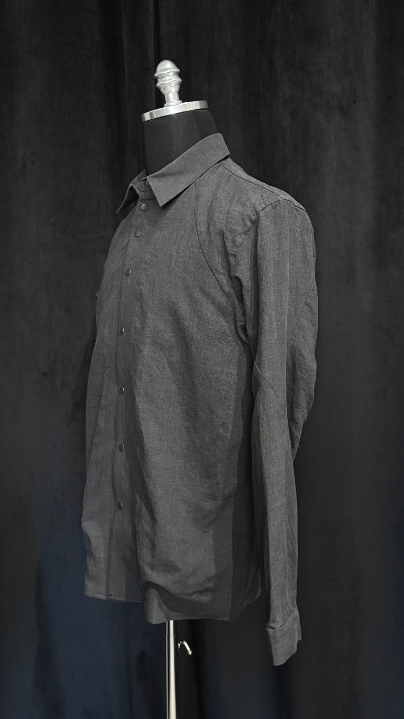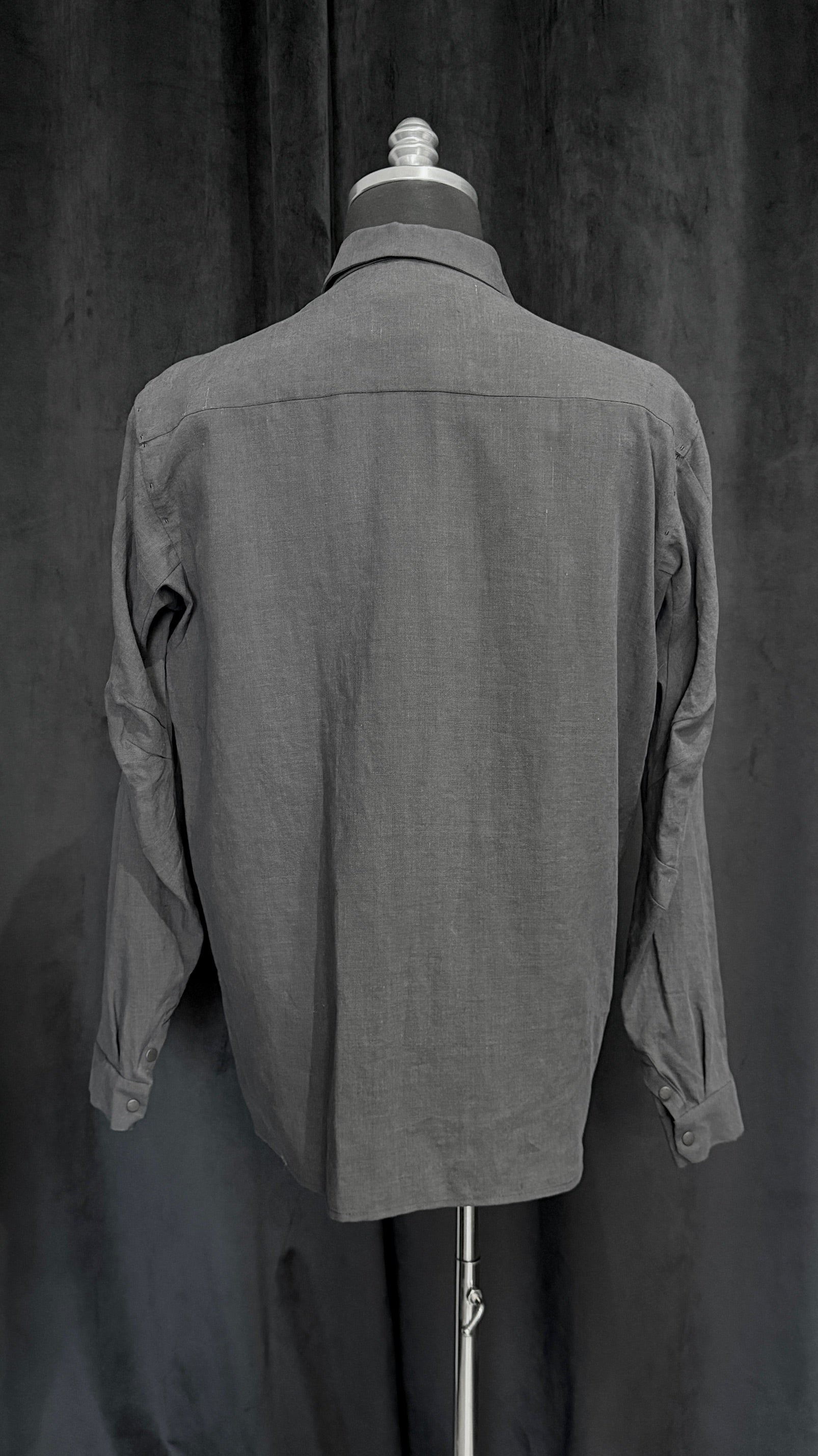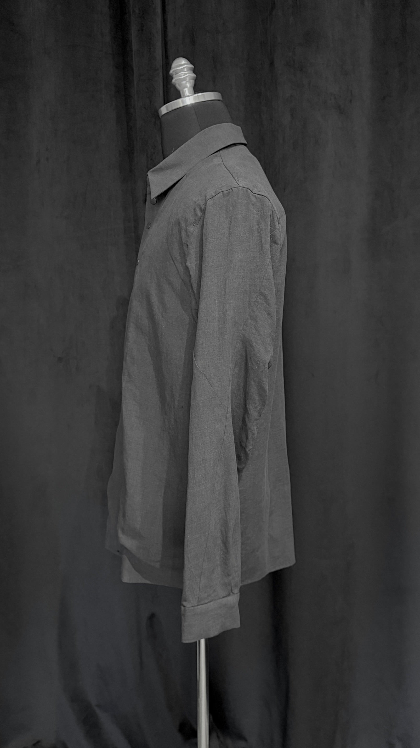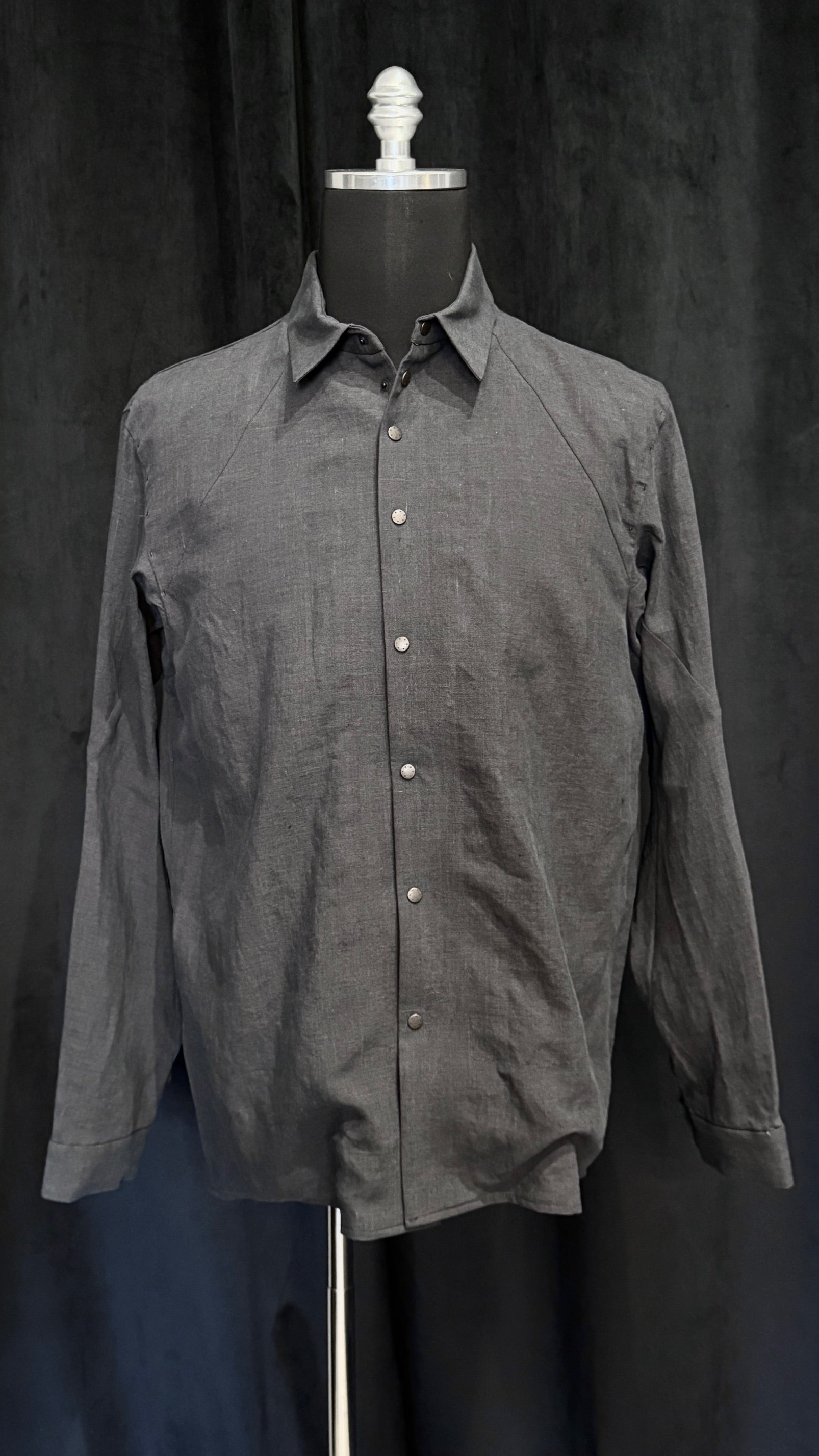 Made with yarn from Linificio, Italy. This Is an original fabric developed from scratch by DEVOA. The fabric is made using a combination of linen and silk threads. The surface of the fabric has been given a vintage finish to create a unique soft texture. Snap buttons.